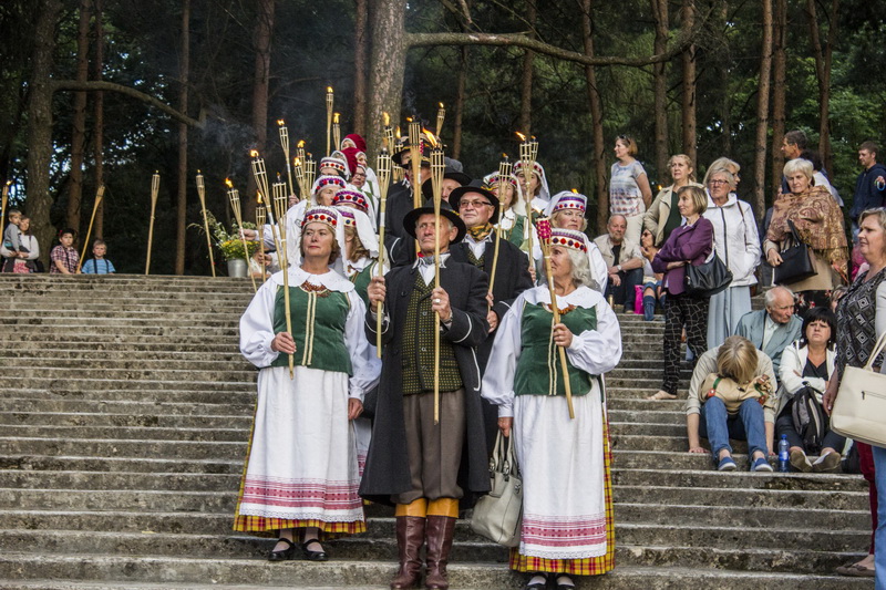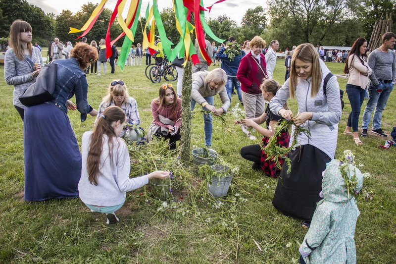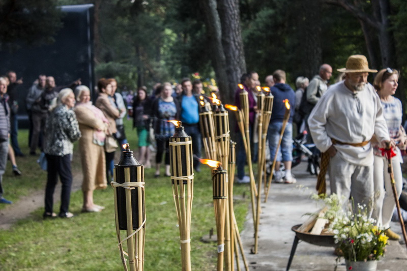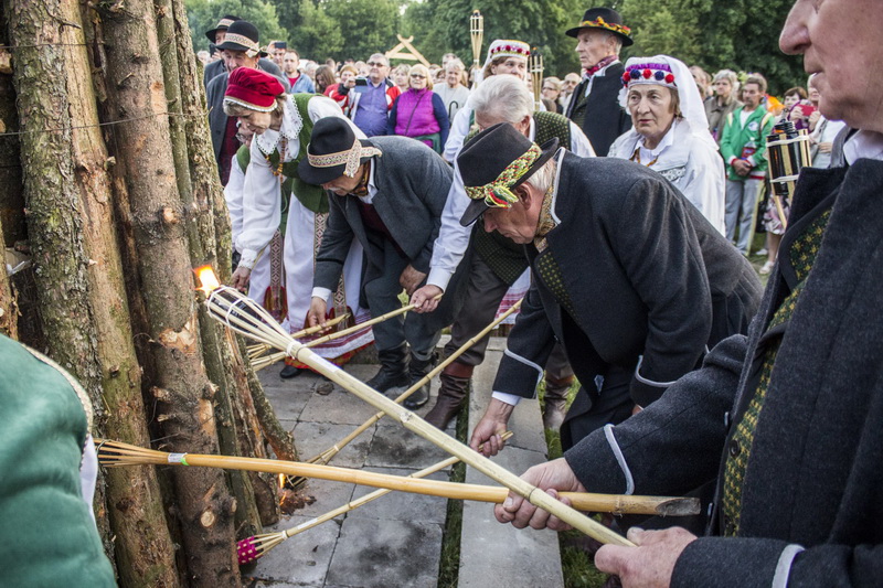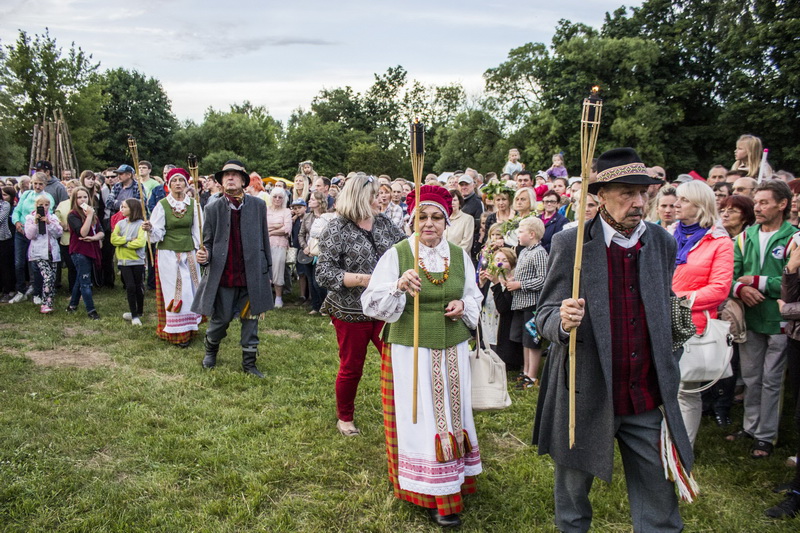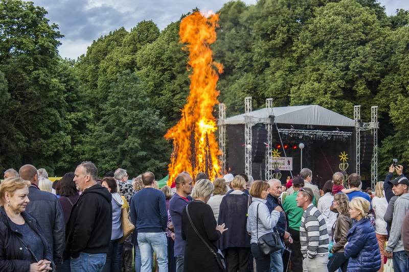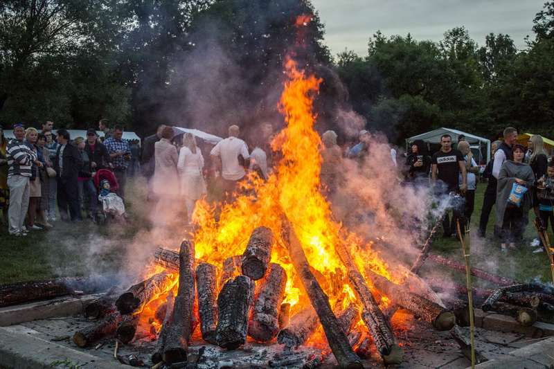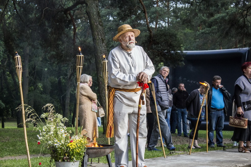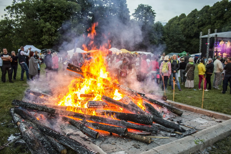 Saulei leidžiantis už parko, buvo prisimintos ir senosios pagoniškos apeigos: žynys ant alkakalnio pagarbino ugnį, buvo uždegtas laužas, plukdomi vainikėliai.