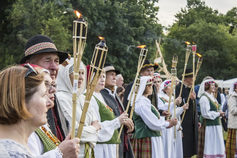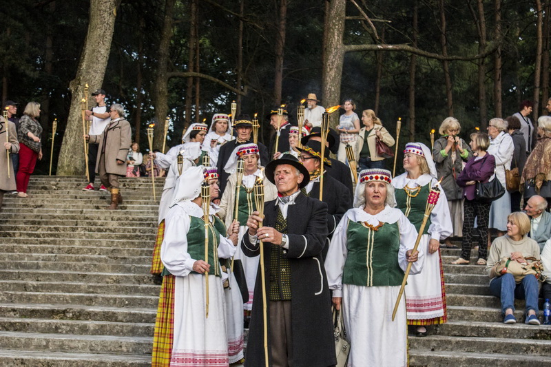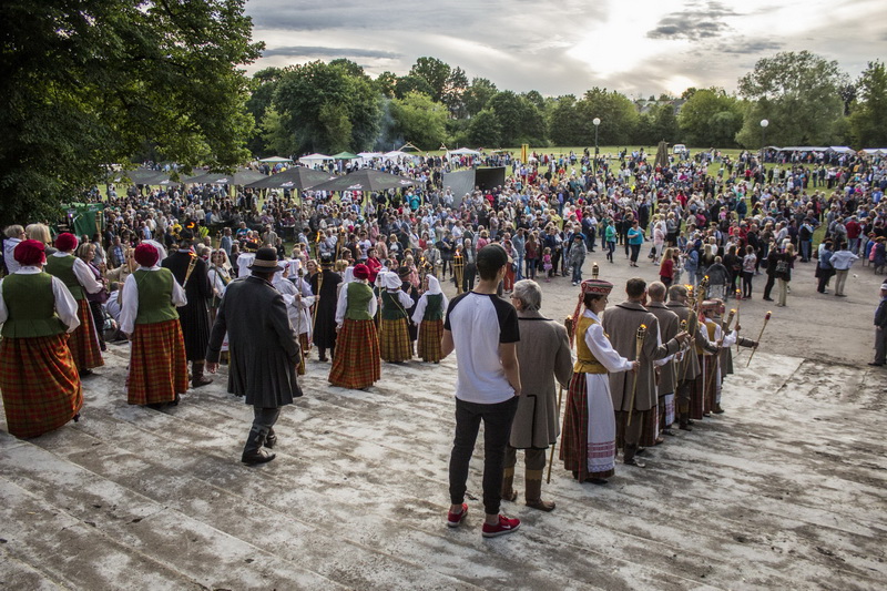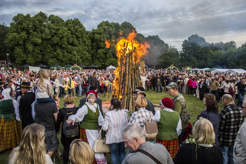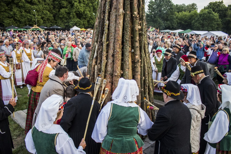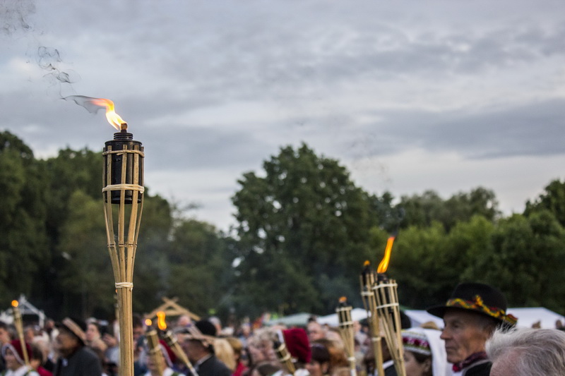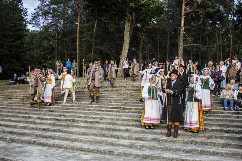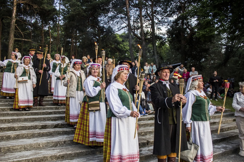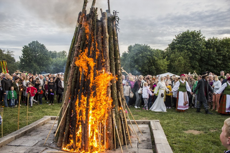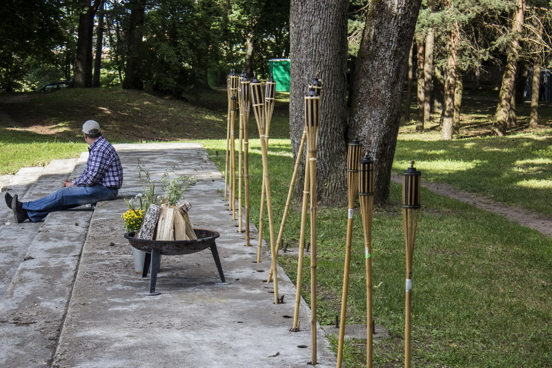 Saulei leidžiantis už parko, buvo prisimintos ir senosios pagoniškos apeigos: žynys ant alkakalnio pagarbino ugnį, buvo uždegtas laužas, plukdomi vainikėliai.