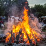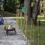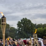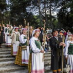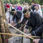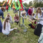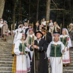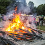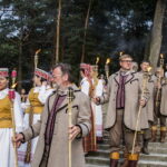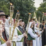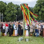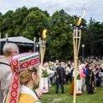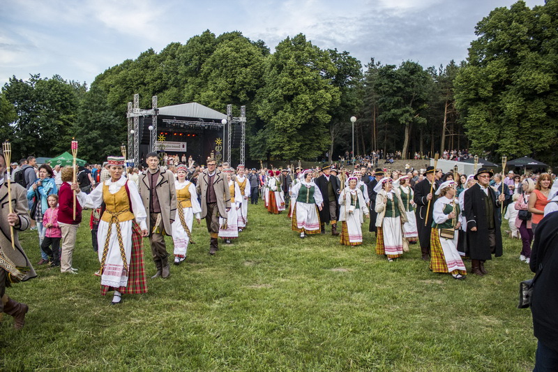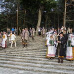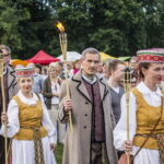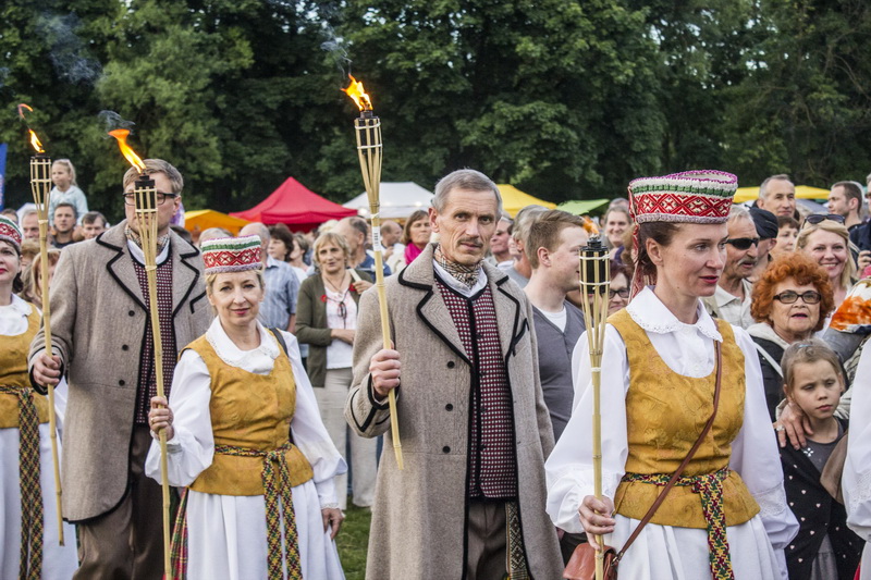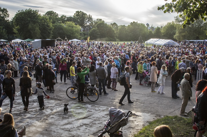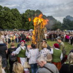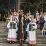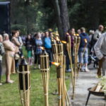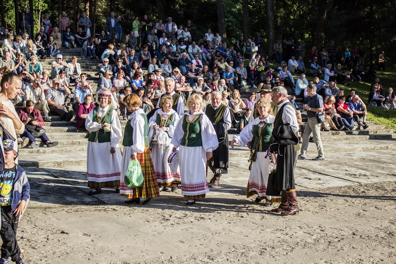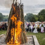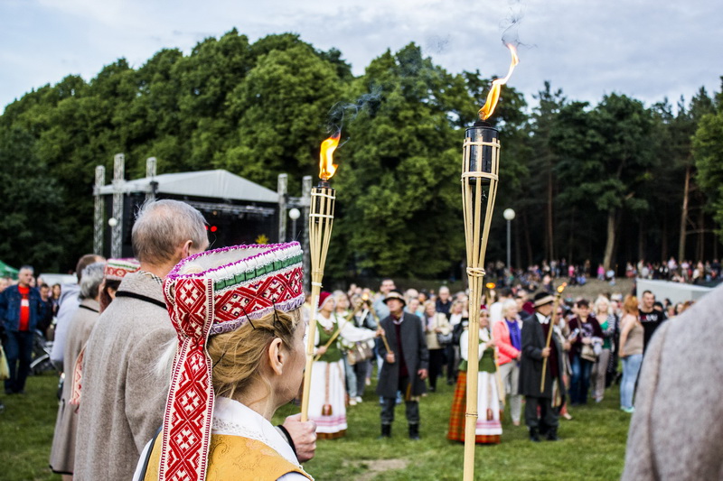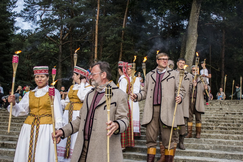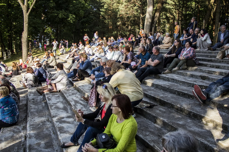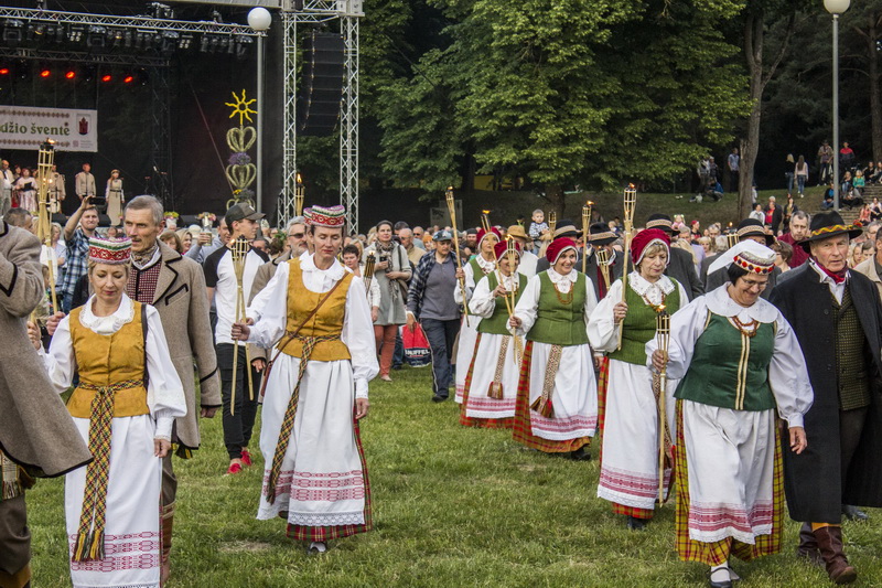 Saulei leidžiantis už parko, buvo prisimintos ir senosios pagoniškos apeigos: žynys ant alkakalnio pagarbino ugnį, buvo uždegtas laužas, plukdomi vainikėliai.