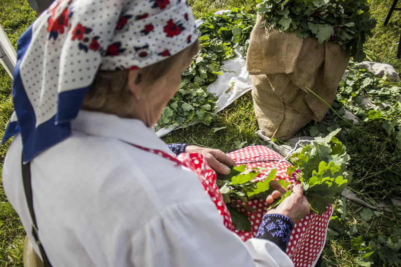 „Mama Janina, todėl pagalvojau nupinsiu vainiką. Visada tik iš gėlių piname, o iš ąžuolo šakelių kažkaip niekas dar nenupynė“, – kalbėjo moteris, kurios teigimu Joninės jų namuose – didelė šventė.