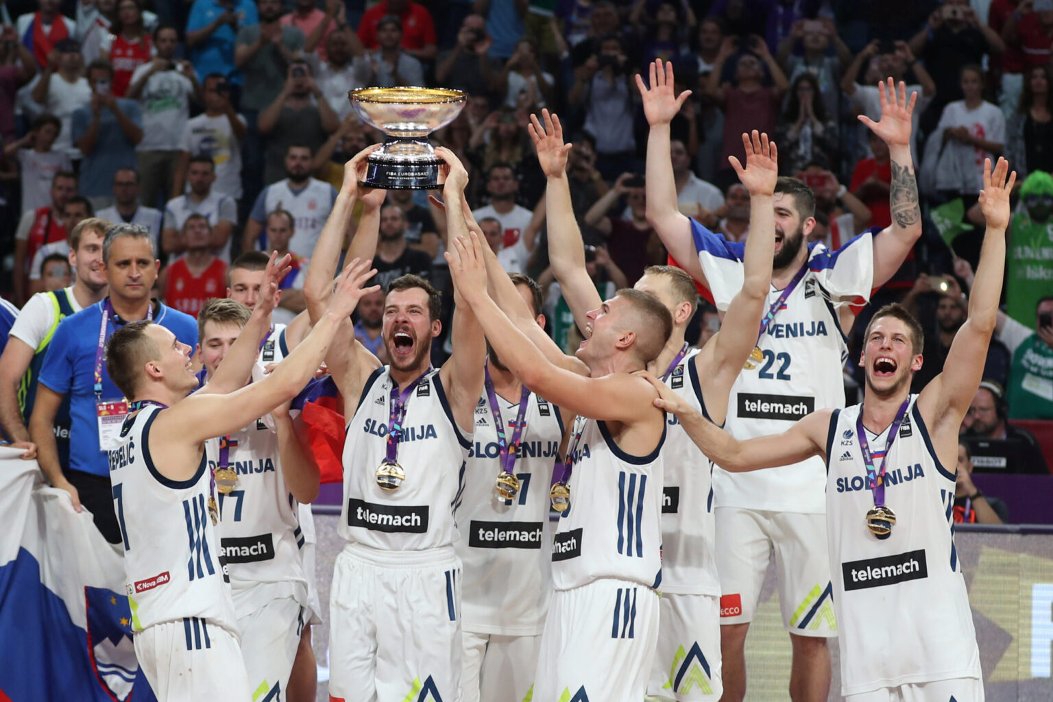 Europos čempionato finale slovėnai rezultatu 93:85 (20:22, 36:25, 15:20, 22:18) įveikė Serbiją ir pirmąkart istorijoje tapo Europos krepšinio čempionais. Tai apskritai pirmas Slovėnijos medalis didžiuosiuose krepšinio turnyruose.