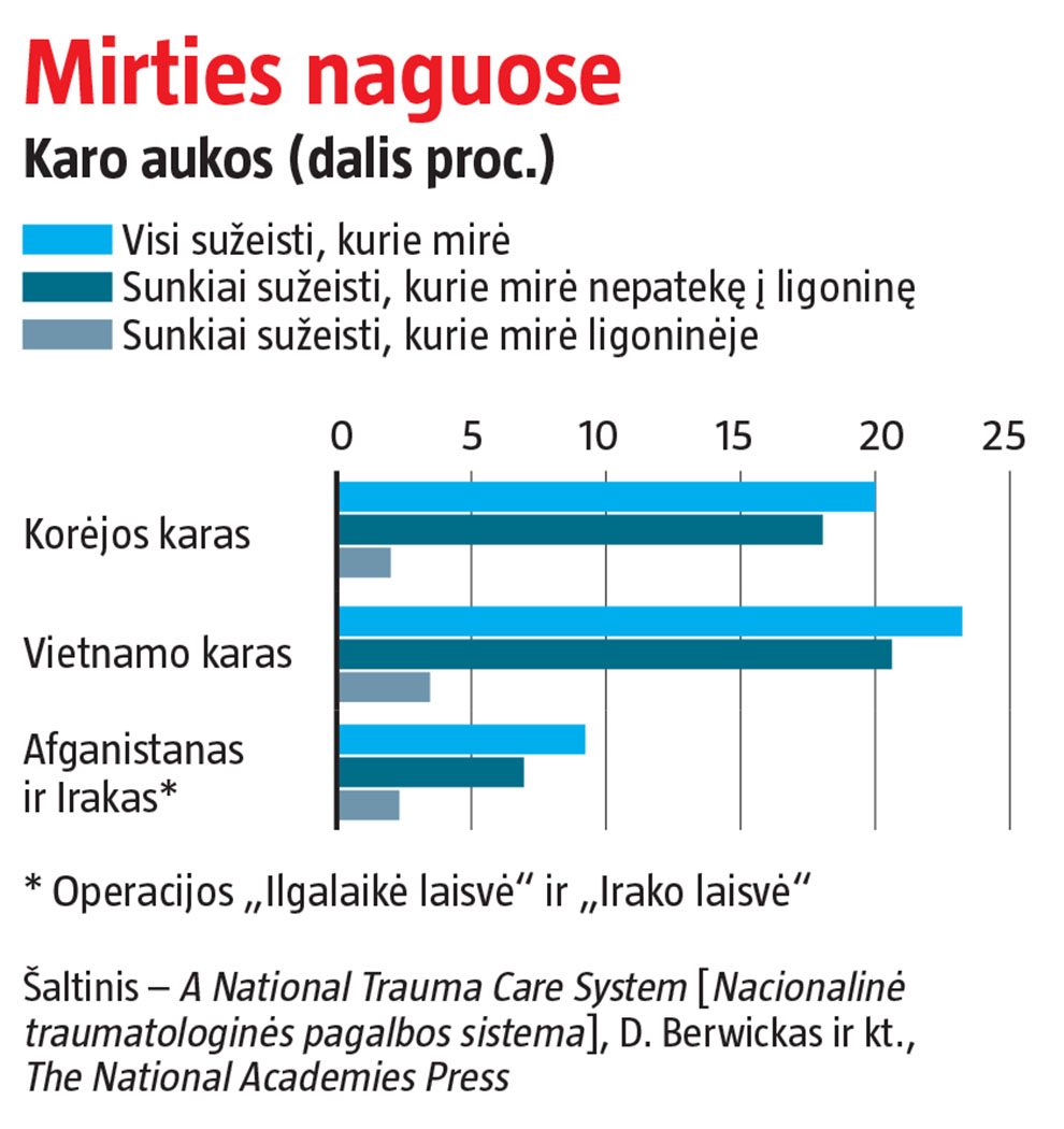 Tai padės traumatologų komandoms toliau tobulėti. O tobulėti reikės. Bandant gelbėti sužeistus karius išmoktos pamokos pakeitė terorizmo aukų gydymą. Bet, kaip rodo išpuolis Las Vegase, į civilius nusitaikę nedorėliai ir toliau pateiks išbandymų su padariniais kovojantiems specialistams.