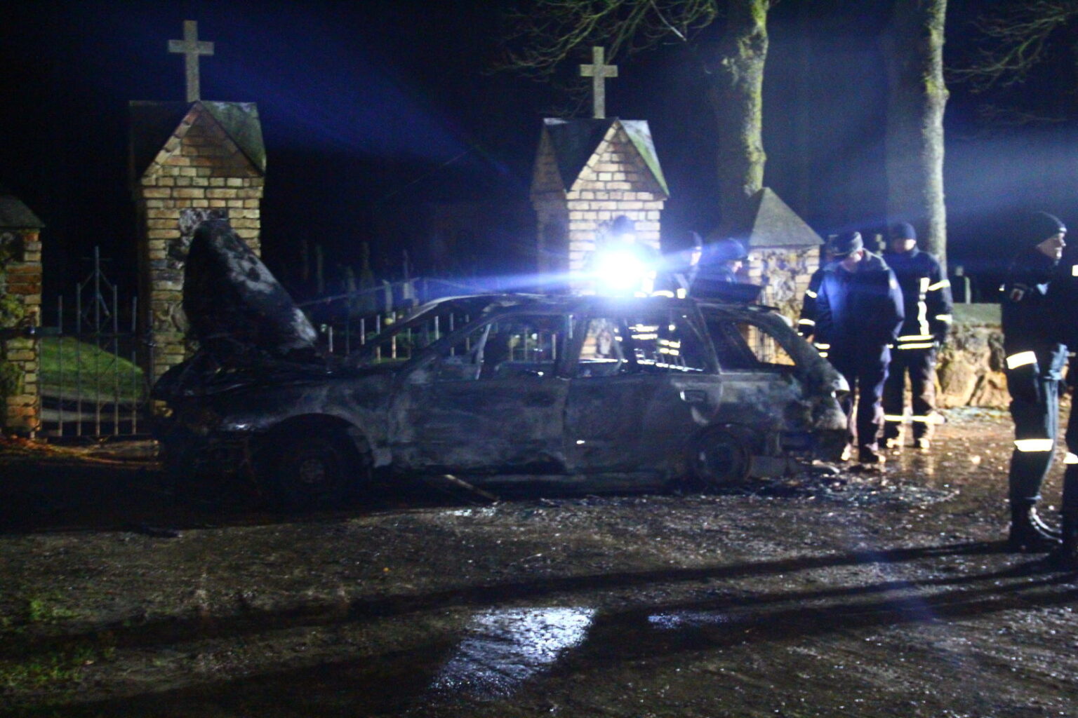 Pirmieji prie bažnyčios atskubėję žmonės išvydo jau liepsnos apimtą „Peugeot“. Už kelių metrų gulėjo apdegęs vyro kūnas. Atvykusiems greitosios medicinos pagalbos medikams beliko konstatuoti jo mirtį.