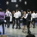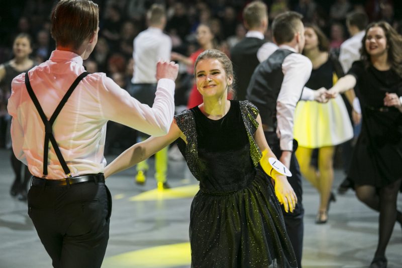 Šokių vakaro metu buvo galima ne vien pasigrožėti ant parketo besisukančiais gimnazistais, bet ir patiems žiūrovams pamiklinti kojas – pertraukėlių metu parodyti savo šokių sugebėjimus ar šokti linijinius šokius.