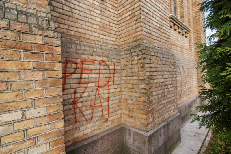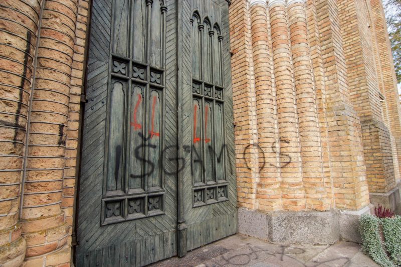 „Kad juos biesas“, – išvydusi juodais ir raudonais dažais nutepliotas bazilikos duris ir sienas, žodžių pritrūko Janina Lavševičienė.