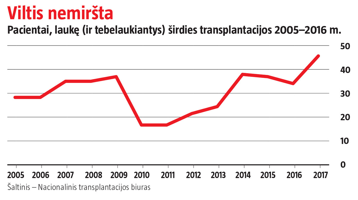 Šiandien donoro širdies laukia 46 ligoniai. Tai gali trukti 1,5–2 metus. Ir daugeliui šiuo atveju išsigelbėjimas yra dirbtinės širdies implantavimas. Ši transplantacijos alternatyva Lietuvoje taikoma nuo 1999 m. Vis dėlto, Nacionalinio transplantacijos biuro prie Sveikatos apsaugos ministerijos duomenimis, per pastaruosius 5 metus vidutiniškai kasmet mirė 6 širdies transplantacijos nesulaukę žmonės.