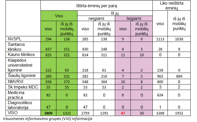 Per ketvirtadienį patvirtinti 47 nauji ligos atvejai, o per vakar dieną ištirta 2809.