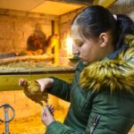 „Čia ohiki vištos – tai reta veislė, kilusi iš Japonijos. Šitos vištos labai draugiškos ir jas galima glostyti paėmus ant rankų“, – savo plunksnuočius įsivedusi į tvartą noriai rodo šeimininkė.