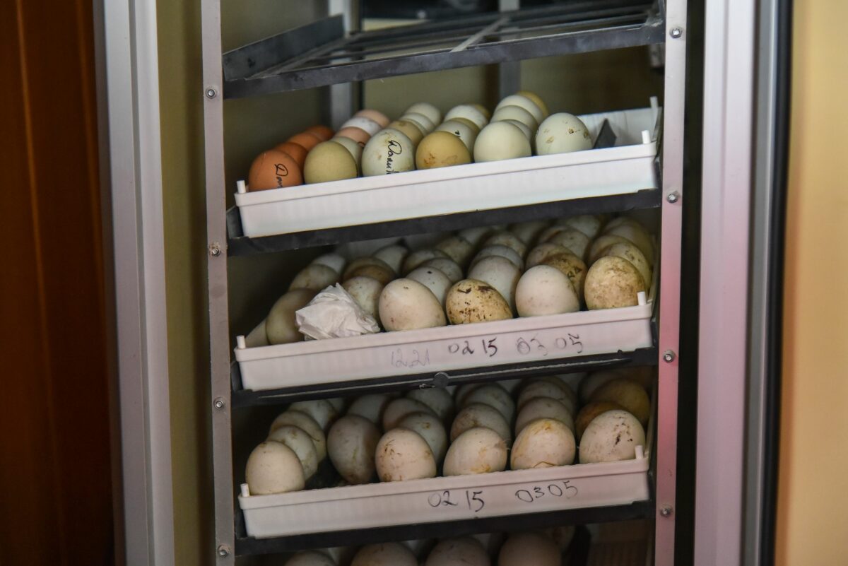 „Galima sakyti, kad ūkyje motinystę išgyvenu kas dieną“, – juokauja pašnekovė, rodydama į pilną kiaušinių inkubatorių.
