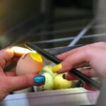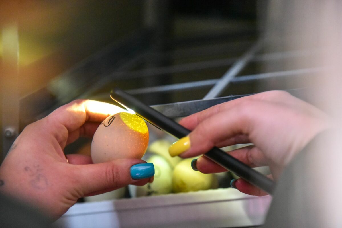 „Turėjau mažesnį aparatą – pradžioje jo iš akių nepaleisdavau, vis žiūrėdavau, ar kas neišsirito. Dabar nusipirkau didesnį, kitiems viščiukus perinu. Įranga pati varto kiaušinius pagal nustatytą laiką“, – džiaugiasi Justina ir parodo, kaip paprasta telefono žibintuvėliu patikrinti, ar kiaušinyje mezgasi nauja paukštelio gyvybė.