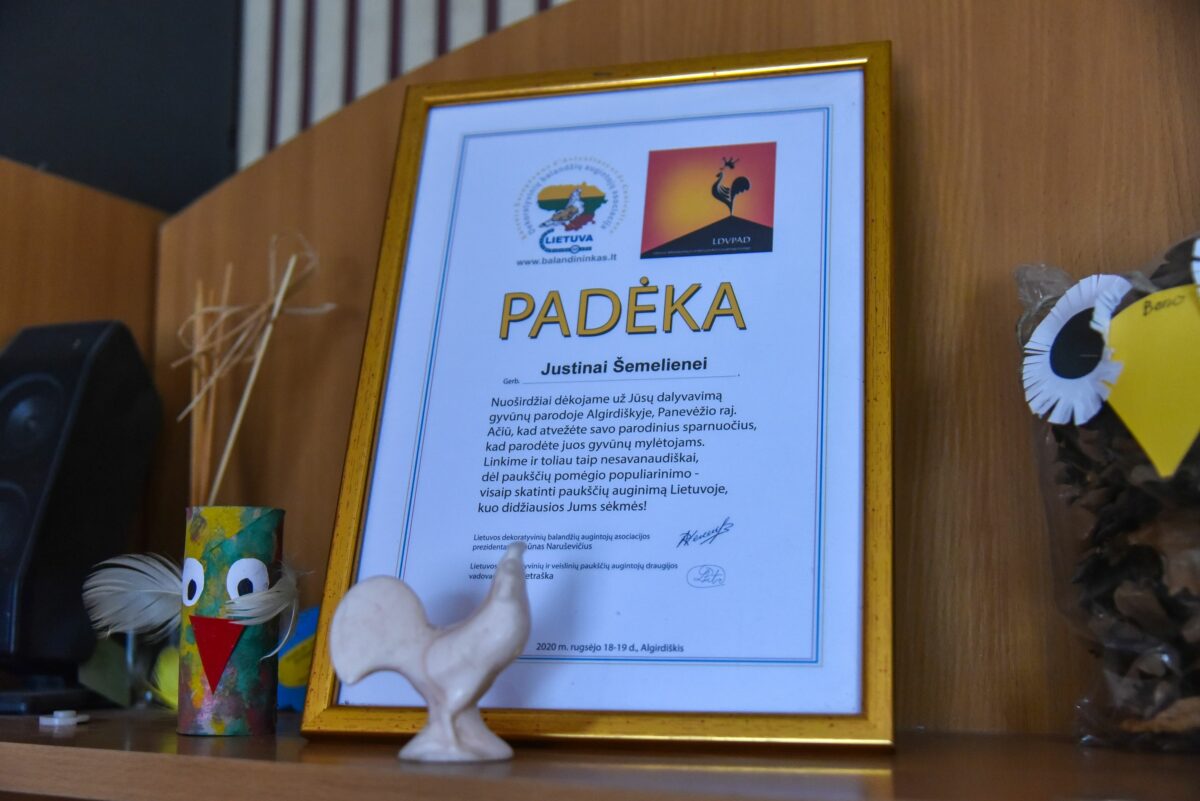 Su savo plunksnuočiais Justina kol kas spėjo sudalyvauti tik vienoje, tradicinėje Algirdiškių veislinių gyvūnų parodoje. Dabar tokius renginius riboja karantinas.