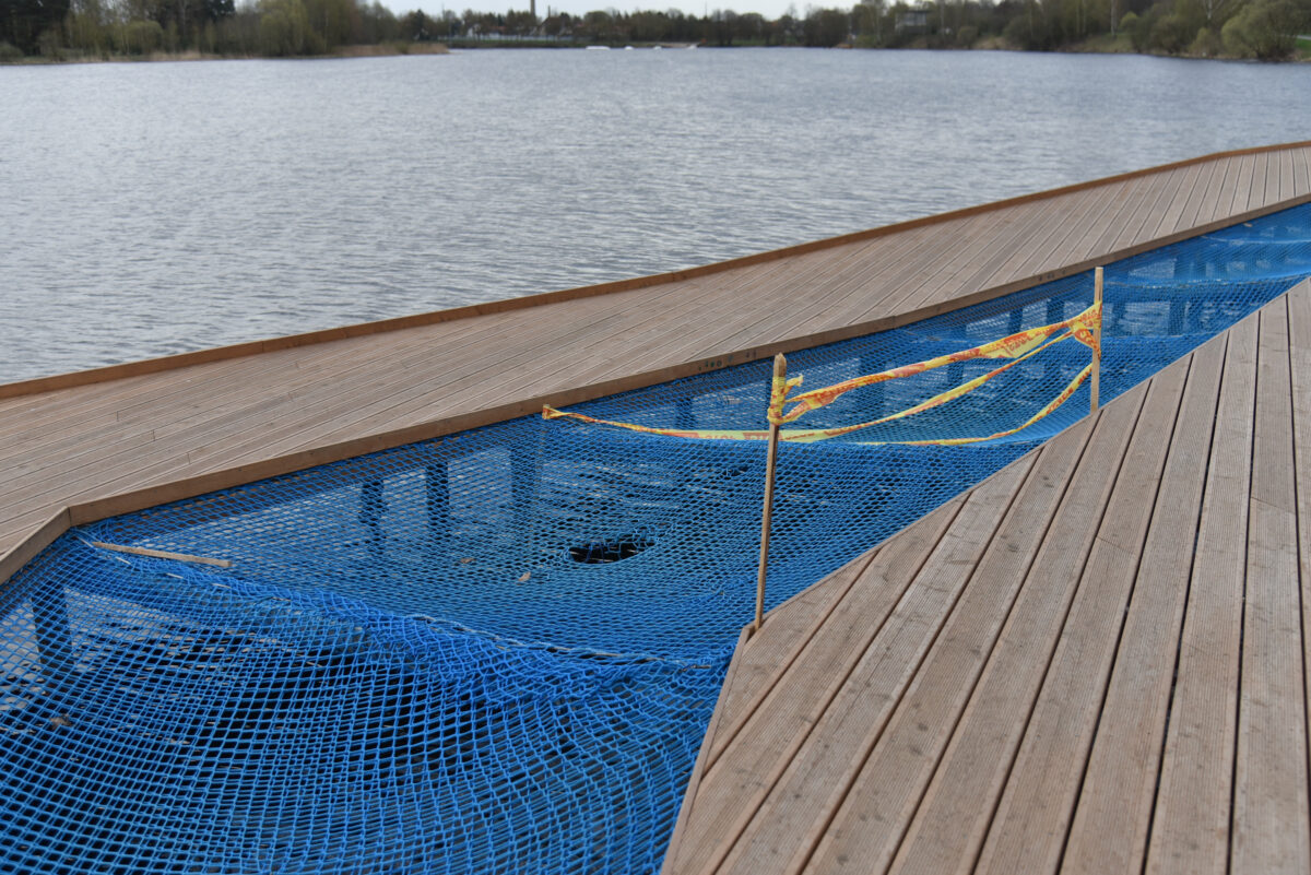 Intensyvia traukos vieta tapusi atnaujintos „Ekrano“ marių pakrantės terasa su ištemptu sintetiniu tinklu virš vandens nepraėjus nė metams jau šaukiasi remonto. Dar praėjusį rudenį ant mėlynojo tinklo virš vandens atsipalaidavę supdavęsi panevėžiečiai nustėro pavasarį jį išvydę nusėtą skylėmis.