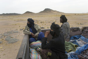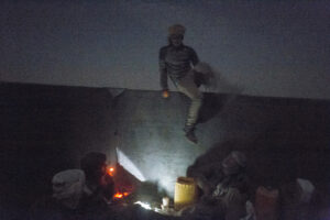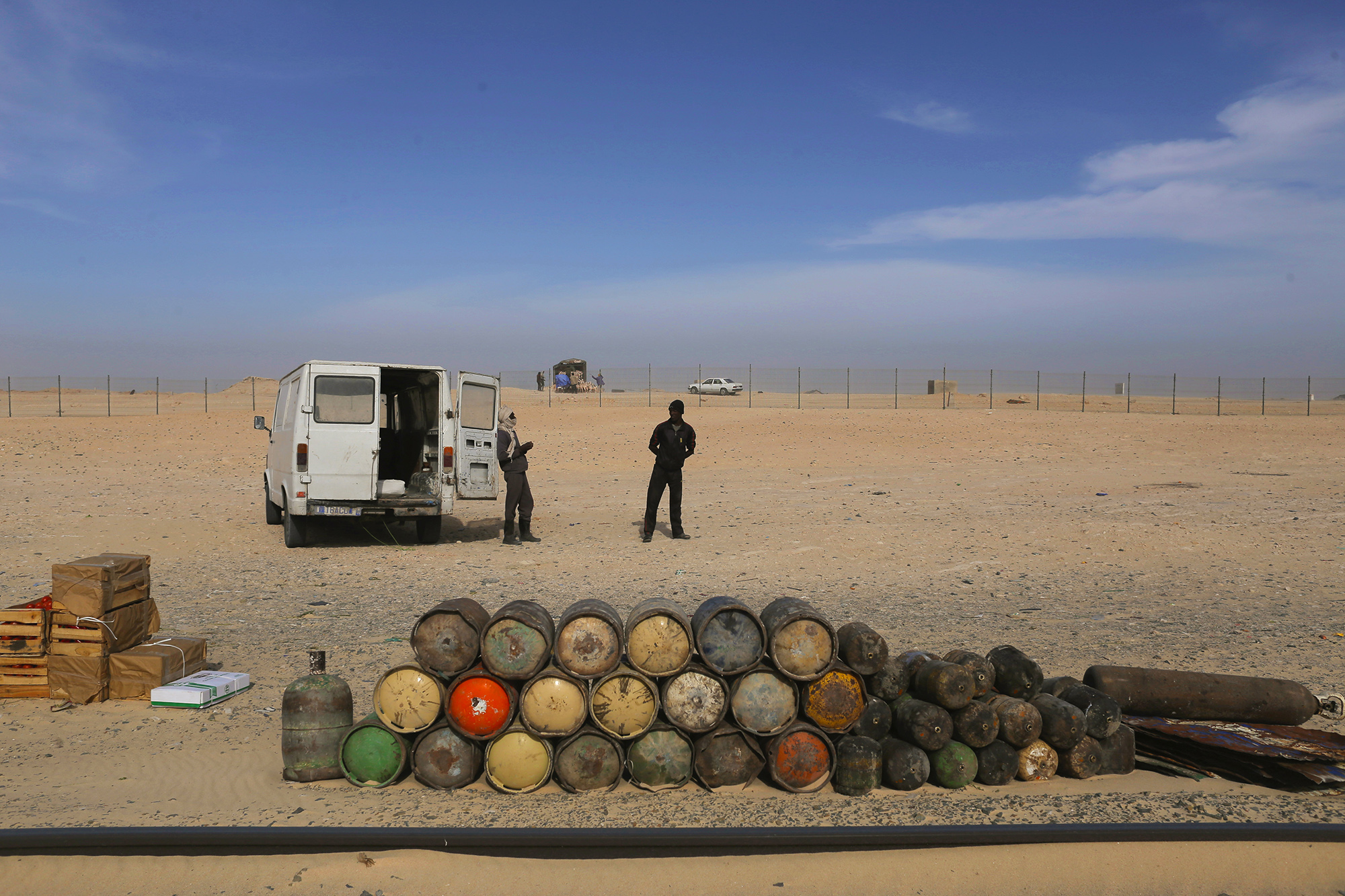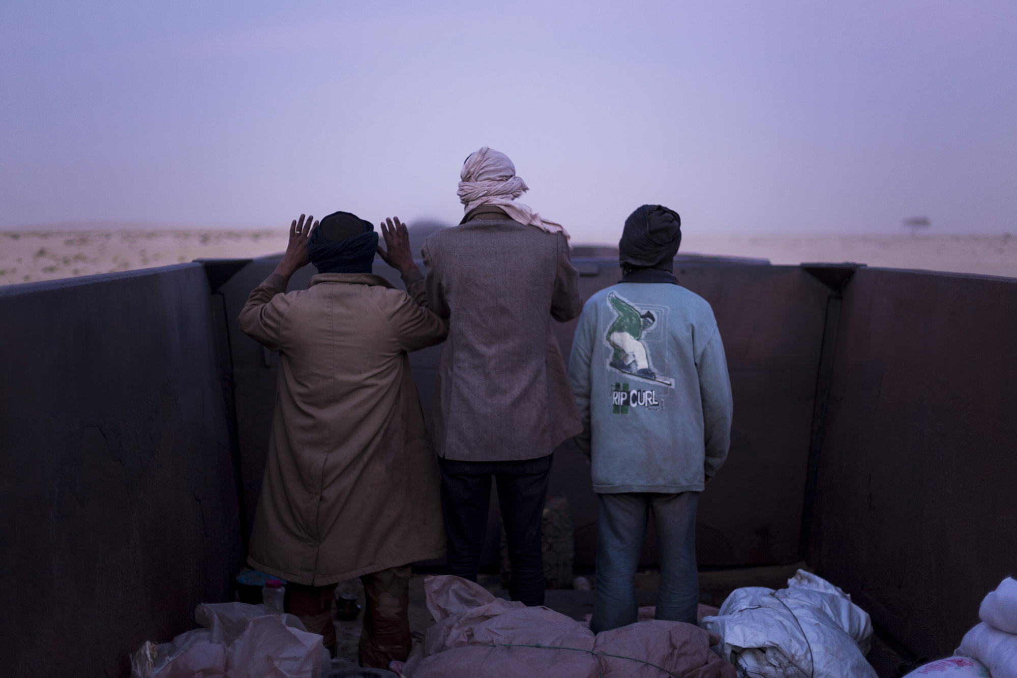Vagonu dalijuosi su grupele vaikinų, kuriems vargiai daugiau nei 20 metų. Saidas, atrodantis taip, tarsi būtų nužengęs iš Holivudo plakato, yra bosas. „Važiuojame tada, kai Saidas gauna mums užsakymą. Šią savaitę tai jau antra kelionė“, – gana sklandžia anglų kalba sako mėlyna skara galvą apsisukęs bendrakeleivis. „Mes esame laisvai samdomi darbuotojai kaip ir tu“, – priduria kitas, šypsosi ir pirštu beda į mano fotoaparatą. Jie puikiai supranta, kad aš čia dėl nuotraukų, bet jiems tai nė motais. Saidas man bruka į rankas dar vieną puodelį stiprios mauritanietiškos arbatos.