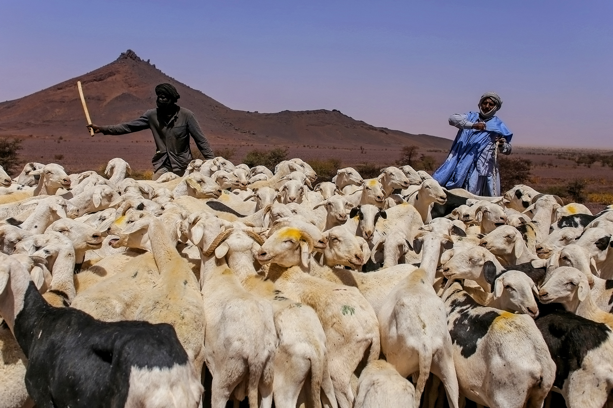 Šį kartą keliauti drauge mane pasikviečia Muhammadas, vienas iš ožkaganių. Jis ir jo komanda taip dirba jau kelerius metus. Grupelė mauritaniečių, vilkinčių senais kostiumais, odiniais švarkais ir ilgais lietpalčiais, labiau primena 1980-ųjų roko grupę nei paprastus darbininkus.
