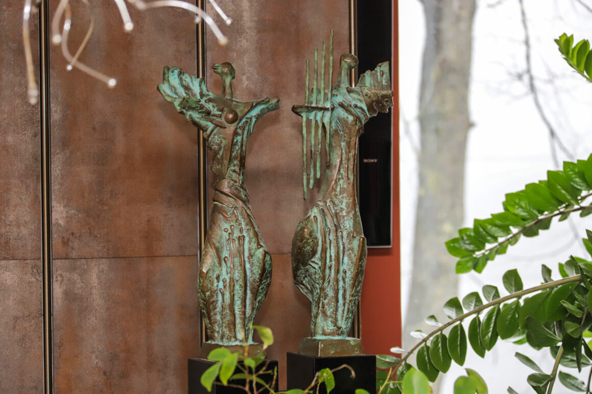 Sakyčiau, yra dvi kategorijos kūrėjų. Vieni sėdi ir laukia, kol mūza atskris, beje, šiai kategorijai ir aš priklausau. Kiti dirba, dirba ir net nepajunta, kai ji atskrenda. Kaip ir turtingoje visokių būtybių mitologijoje, taip ir šiandien visokių tų mūzų yra, visokių tų įkvėpėjų ir iškvėpėjų (juokiasi). Mano kūryboje, tiek skulptūroje, tiek piešiniuose, moters atvaizdas tikrai dažnas, dabar jau ir modelio pasisodinti nebereikia, galiu piešti iš atminties.