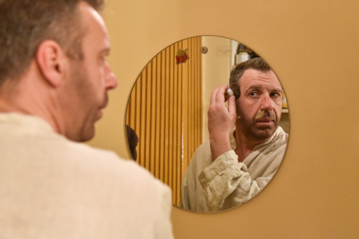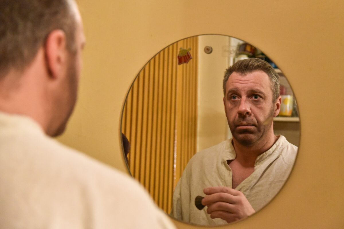 Penkiolika metų kategoriškai niekam interviu nedalijęs Panevėžio teatro „Menas“ aktorius Saugirdas Stakelė ir dabar stengiasi likti nematomas, neatpažįstamas.