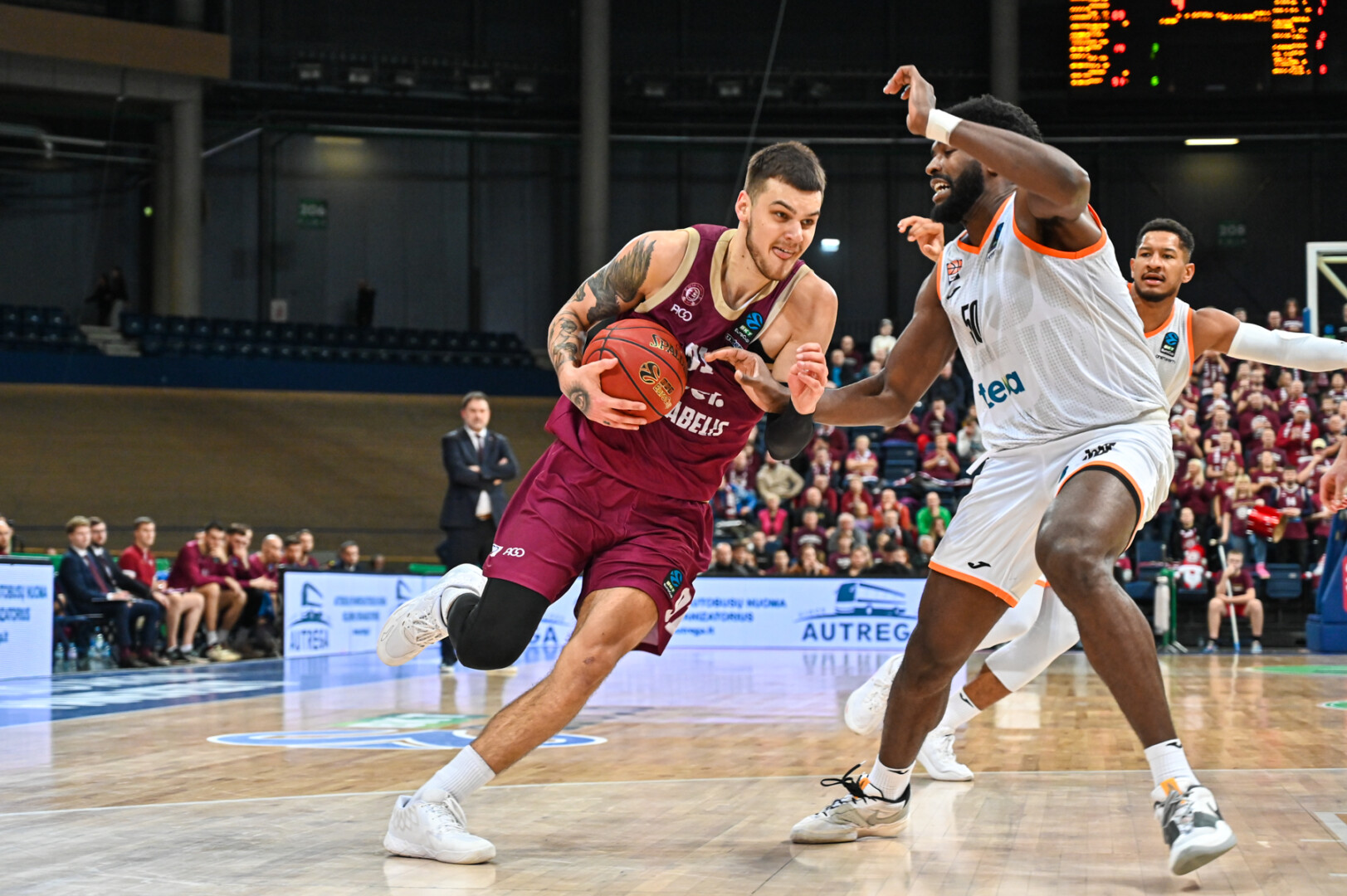 Antrąją susitikimo pusę sėkmingiau pradėjo Vokietijos klubo krepšininkai, įgiję rekordinę 8 taškų persvarą – 54:46. Įpusėjus trečiajam kėliniui „7bet-Lietkabelis“ nežymiai atsiliko nuo svečių 54:59. Paulius Valinskas tritaškiu metimu išlygino rezultatą 62:62. Po trijų ketvirčių aikštės šeimininkai pirmavo rezultatu 68:65.