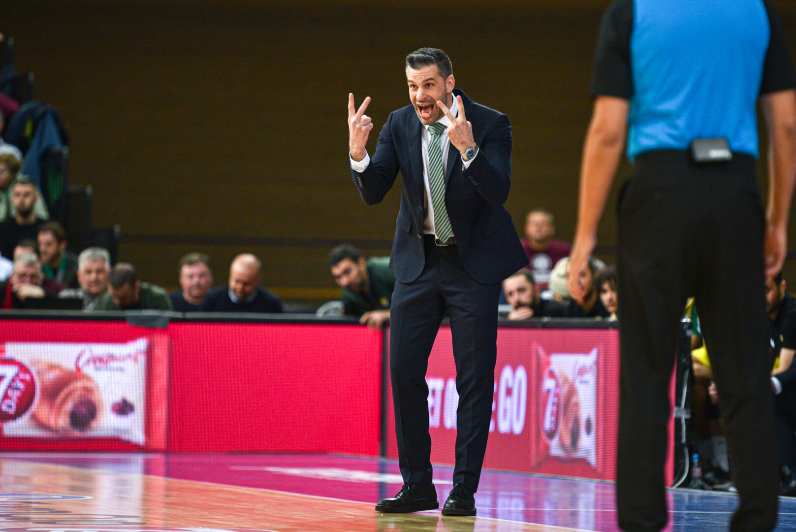 Prasidėjus antrajam ketvirčiui, „7bet-Lietkabelis“ persvėrė rezultatą savo naudai, kai dvitaškiu pasižymėjo Paulius Murauskas (27:26). Tačiau vėliau dominavo „Frutti Extra“ ekipa, kuri išlaikė savo persvarą iki pat pirmosios rungtynių dalies pabaigos. Nenado Čanako vadovaujami panevėžiečiai po dviejų kėlinių turėjo 8 taškų deficitą – 35:43.