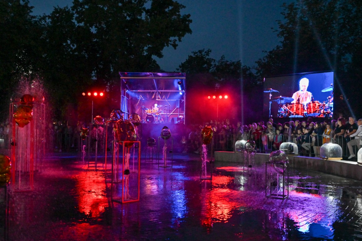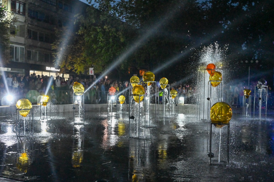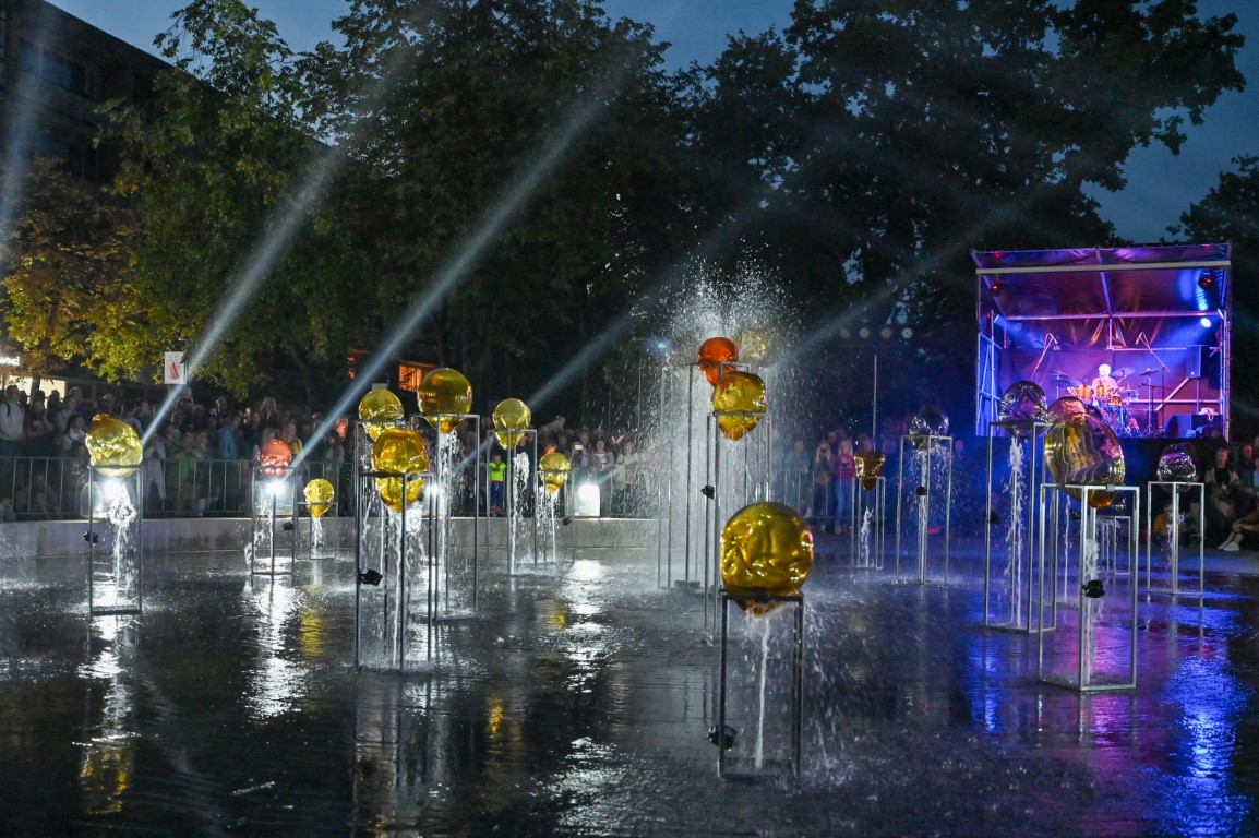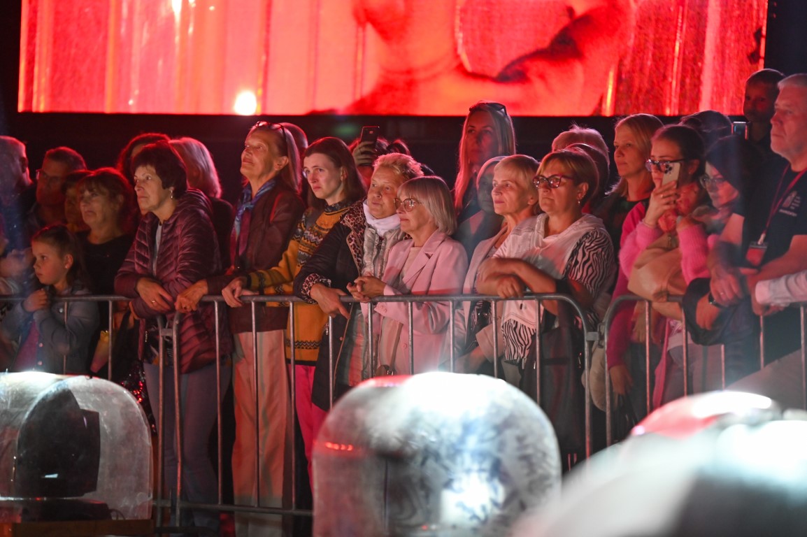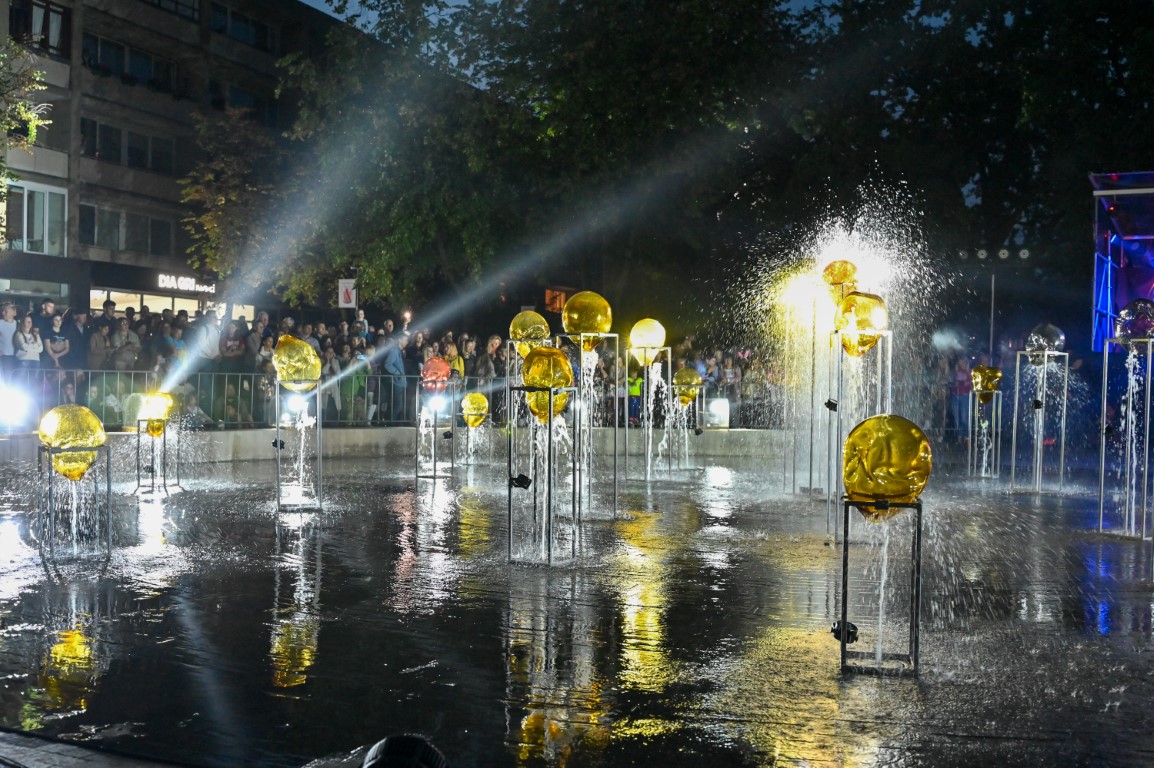 Netilpusieji prie aikštės fontano, tapusio scena menininkams, unikalų ir vienetinį pasirodymą, stebėjo tiesiogiai transliuojamą LED ekranuose.