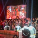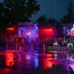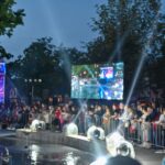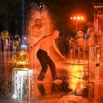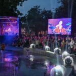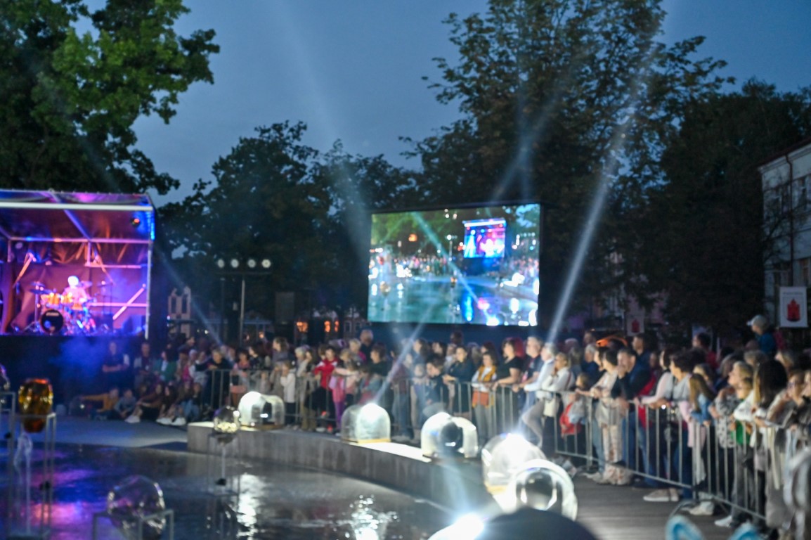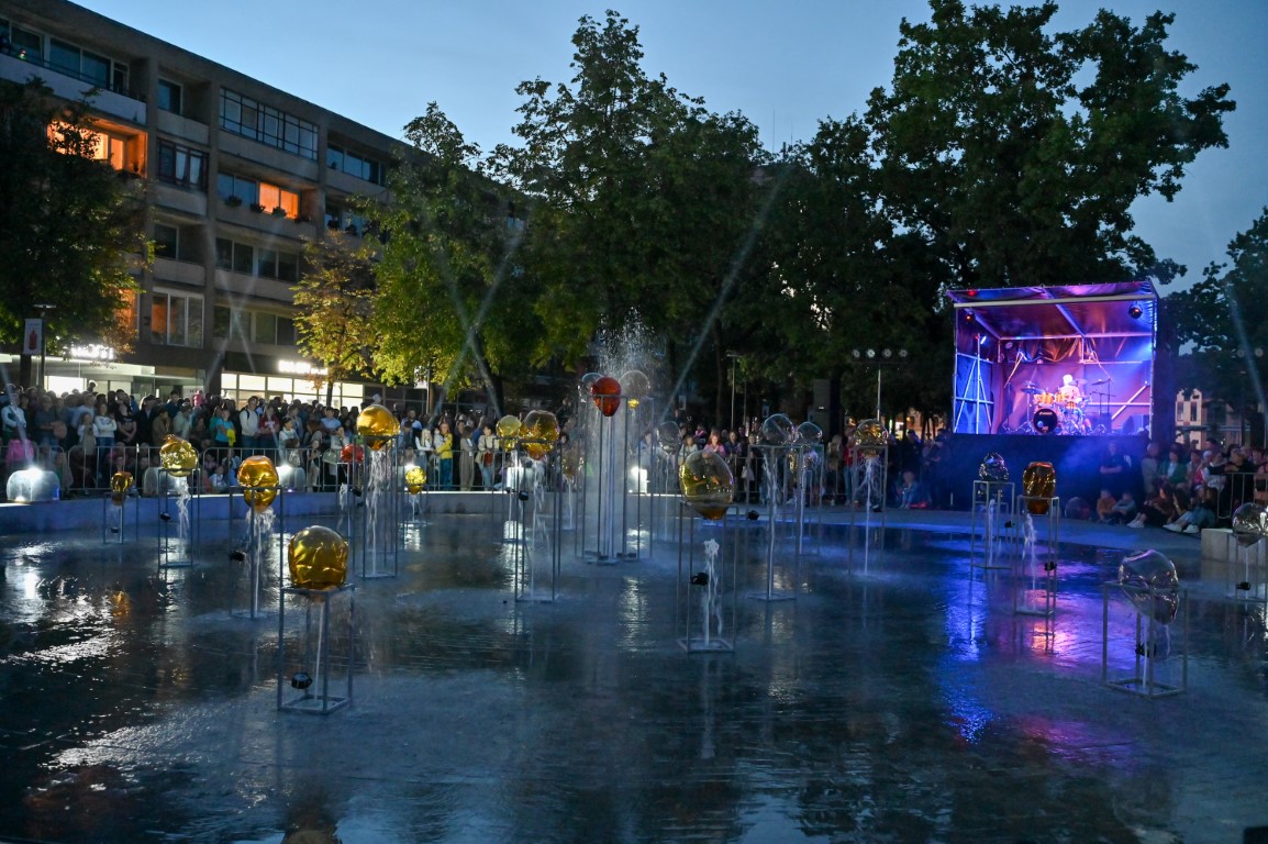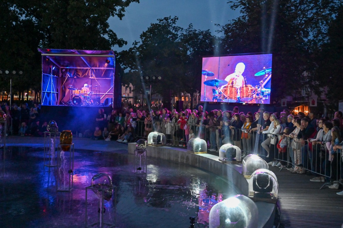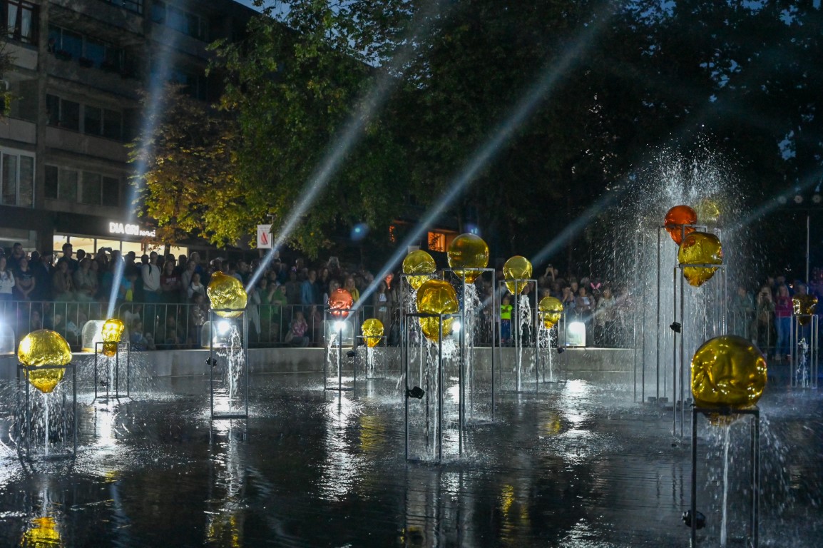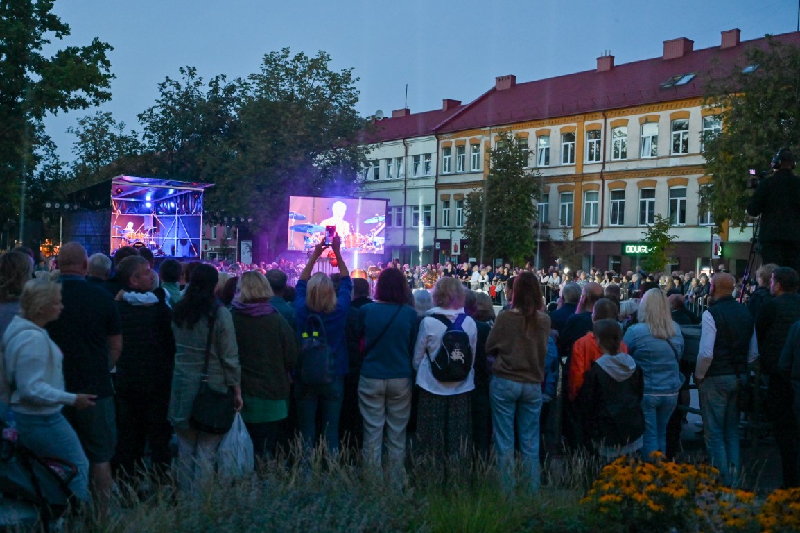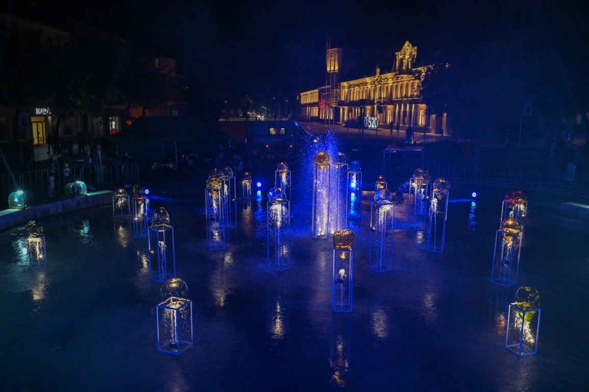 Netilpusieji prie aikštės fontano, tapusio scena menininkams, unikalų ir vienetinį pasirodymą, stebėjo tiesiogiai transliuojamą LED ekranuose.