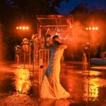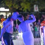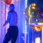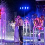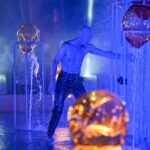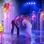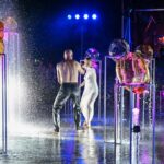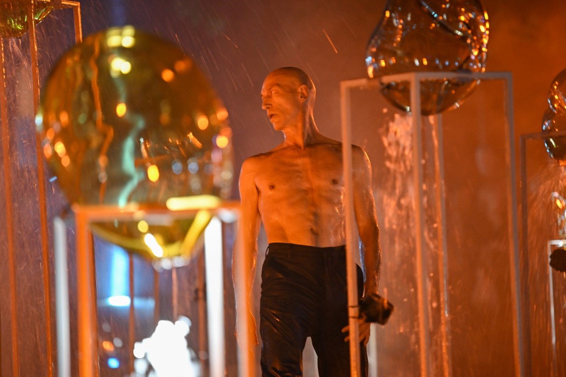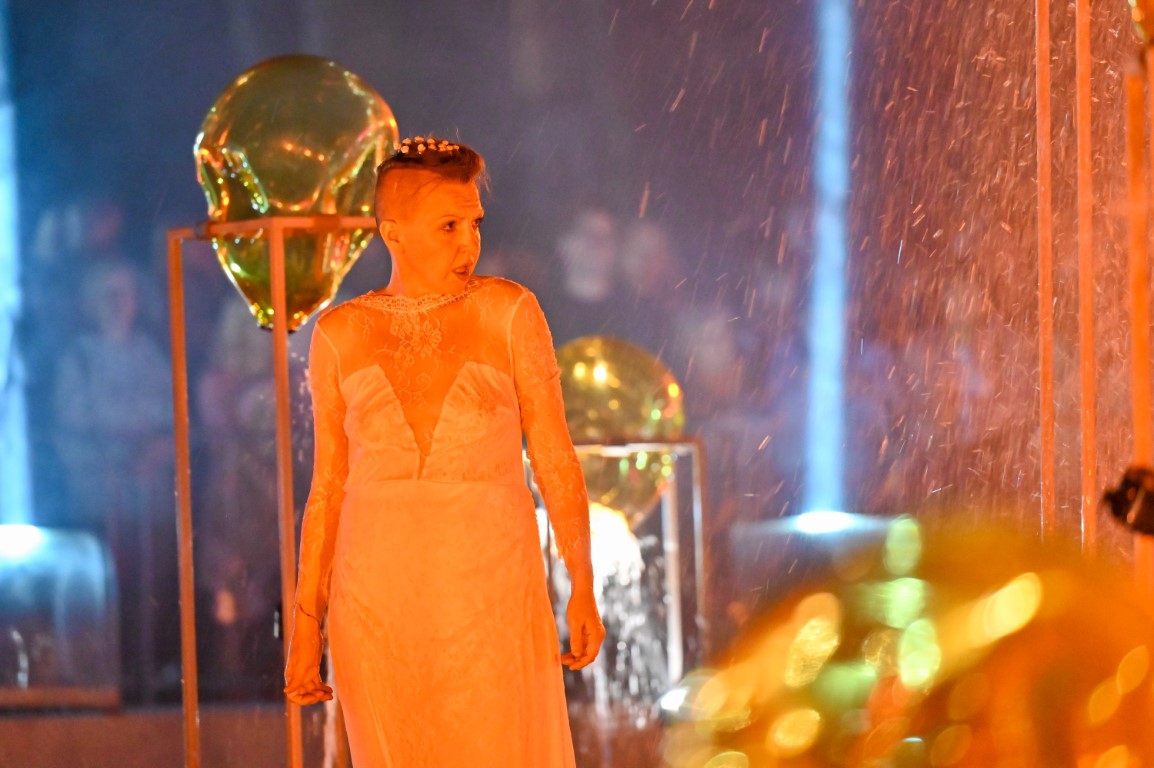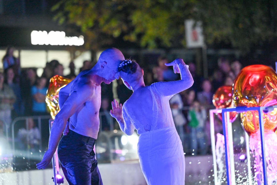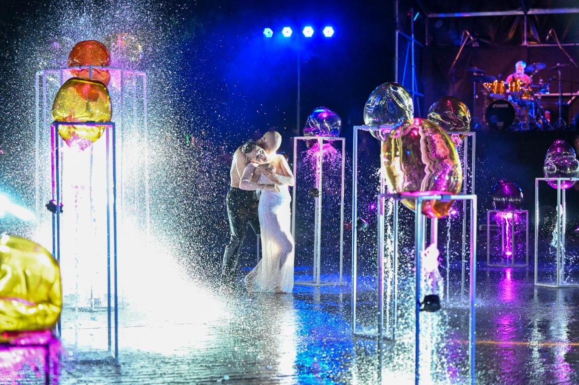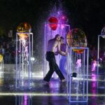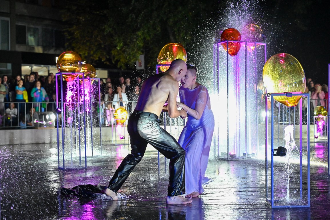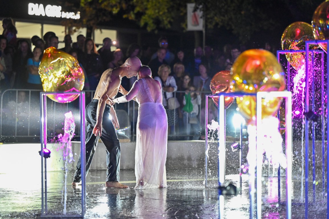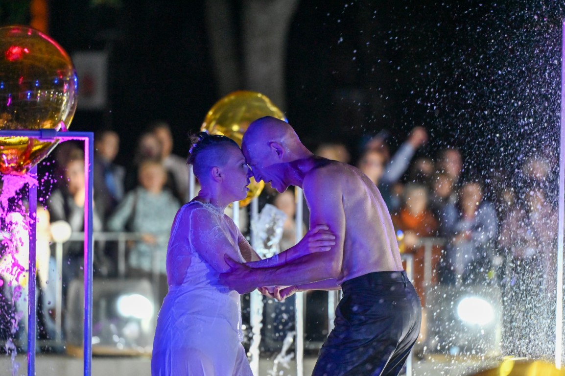 Performanso metu skambėjo mušamųjų muzika su savotiškais vokaliniais intarpais. Scena tapusiame fontane, papuoštame stiklo skulptūromis, pasirodė du šokėjai, blyškioje šviesoje šokio judesiais vaizdavę siužetą.