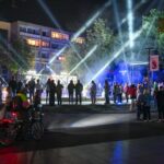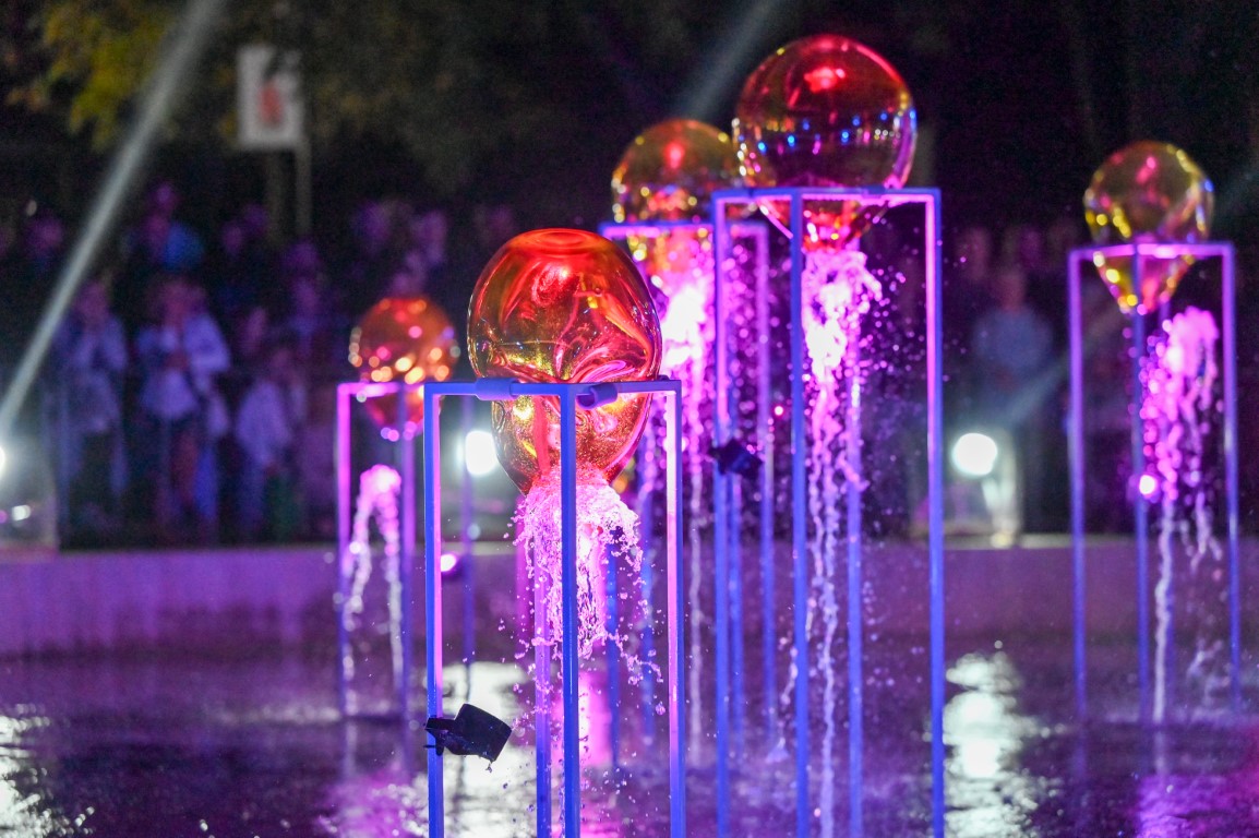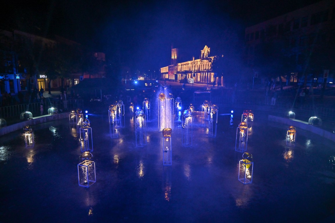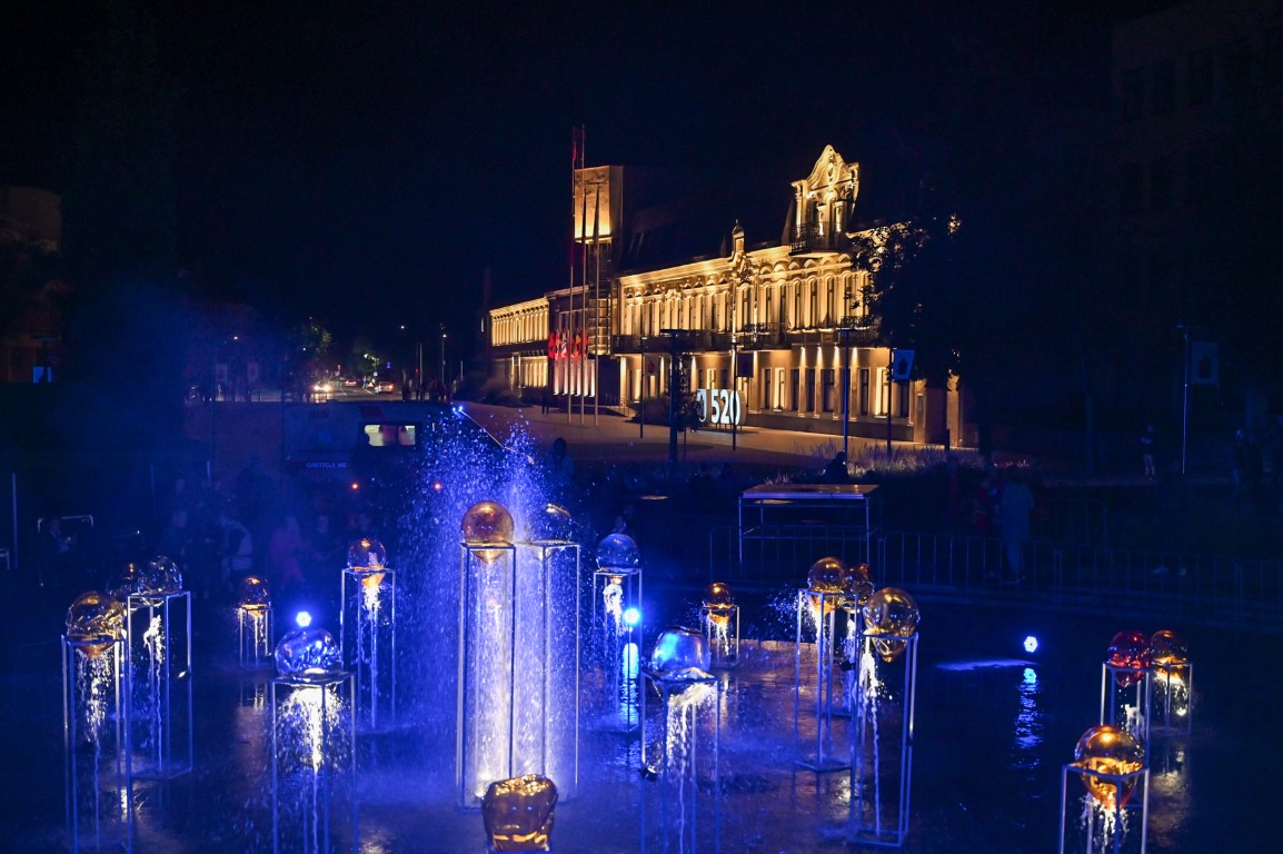 Švenčiantį Panevėžį apgaubus sutemoms, penktadienio vakarą Laisvės aikštę nušvietė šviesų, muzikos, šokio ir stiklo meno sintezė – performansas „Virsmas“.