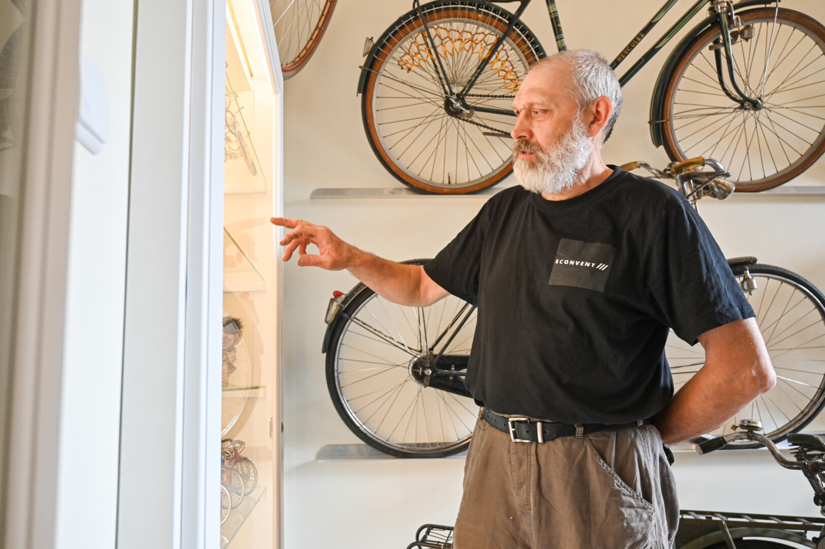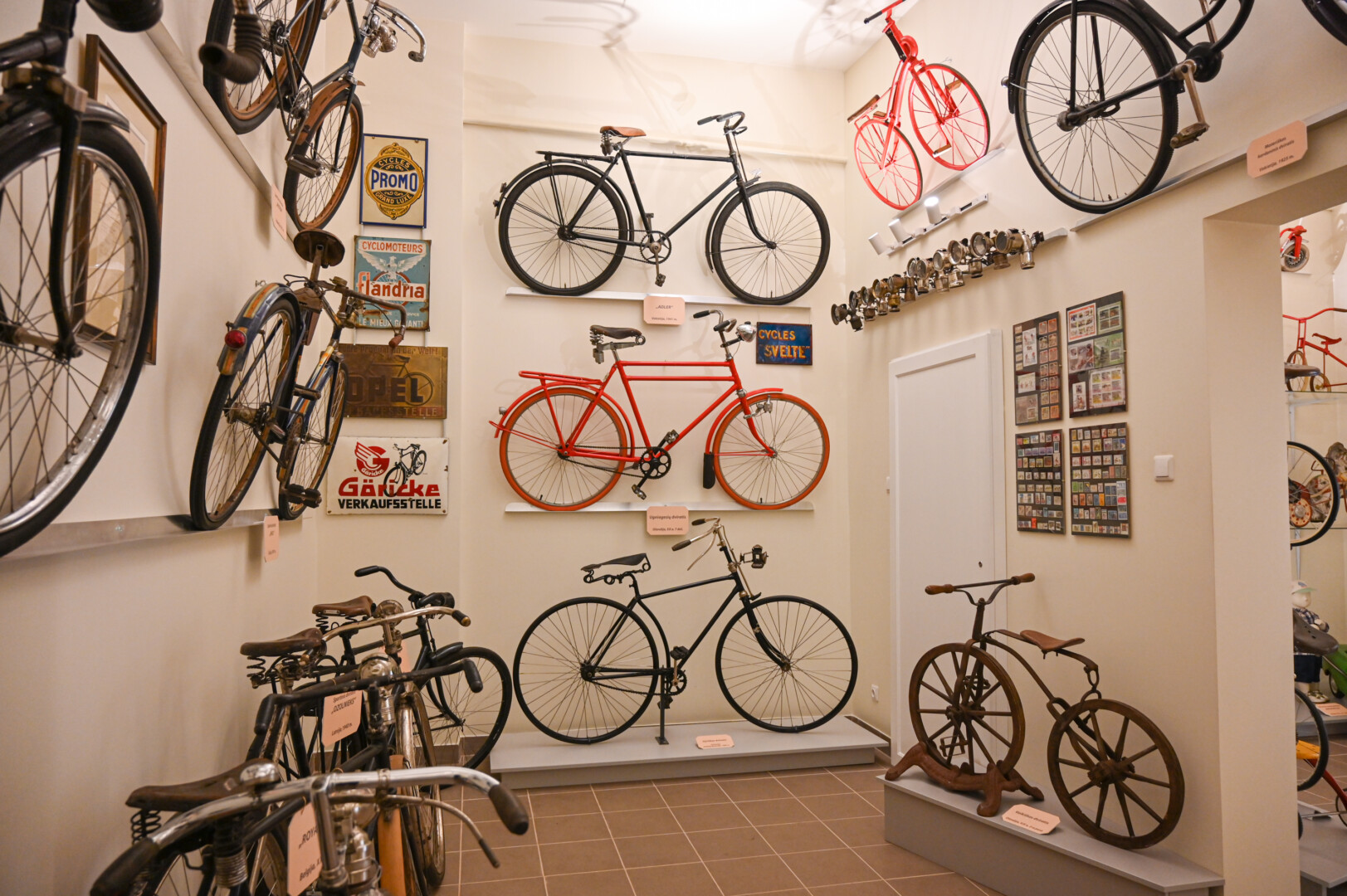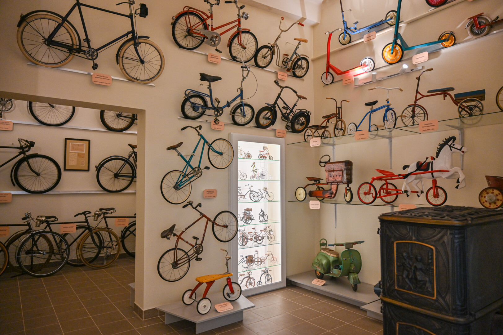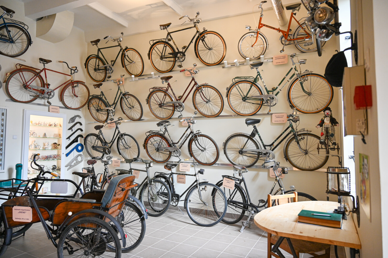 Svetingas šio muziejaus šeimininkas senus dviračius, paspirtukus, triratukus, jų detales, statulėles ir visa tai, kas susiję su dviratėmis transporto priemonėmis, kaupė kone du dešimtmečius.