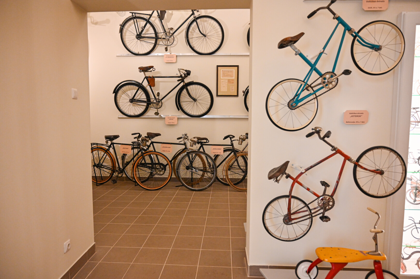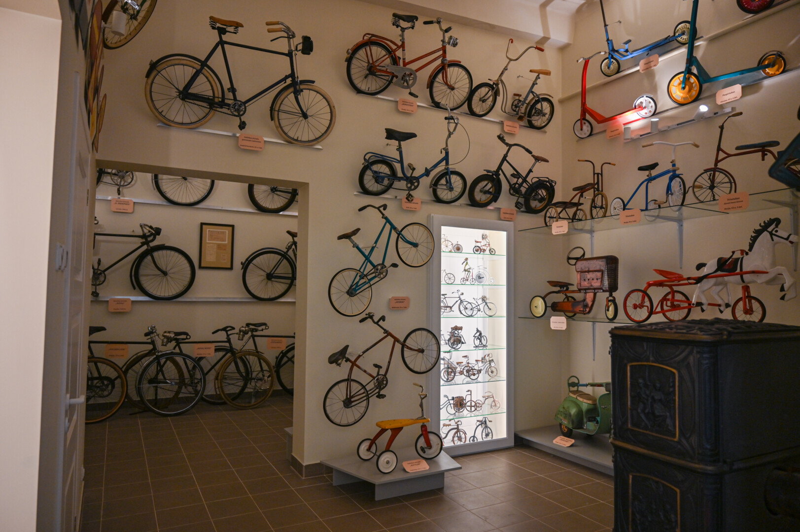 Nedidelio muziejaus viena salė skirta tik vaikiškam transportui.