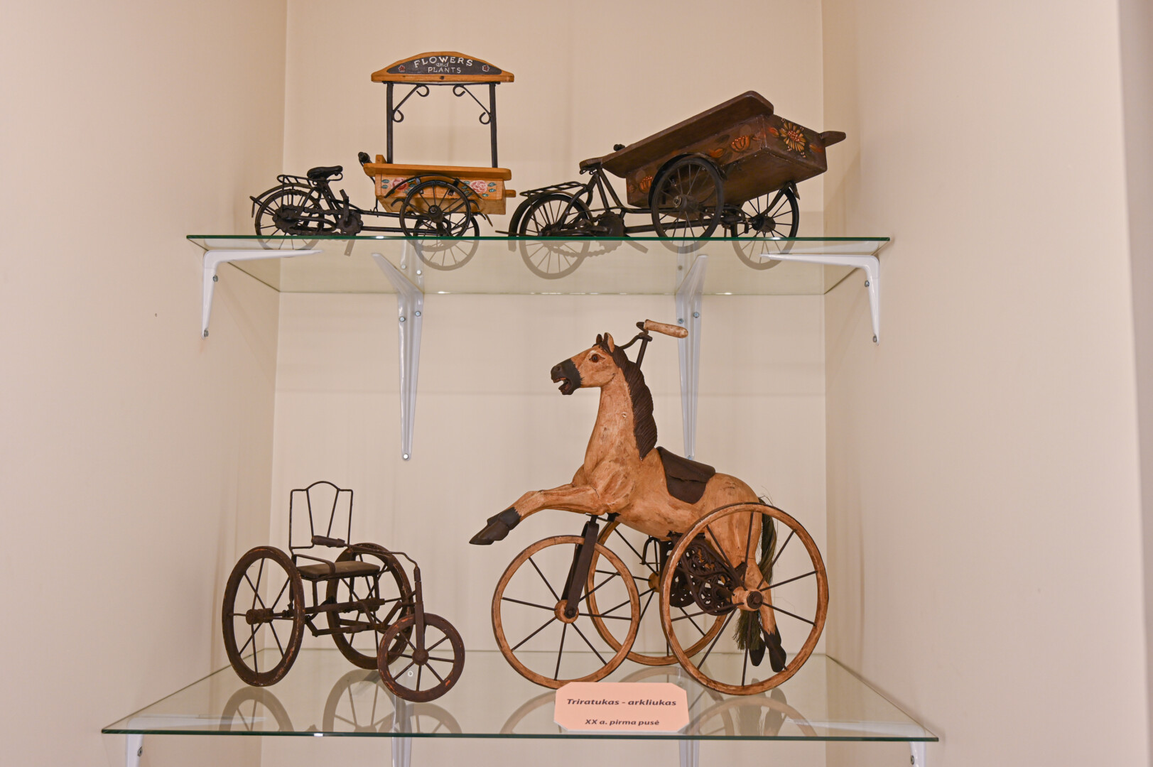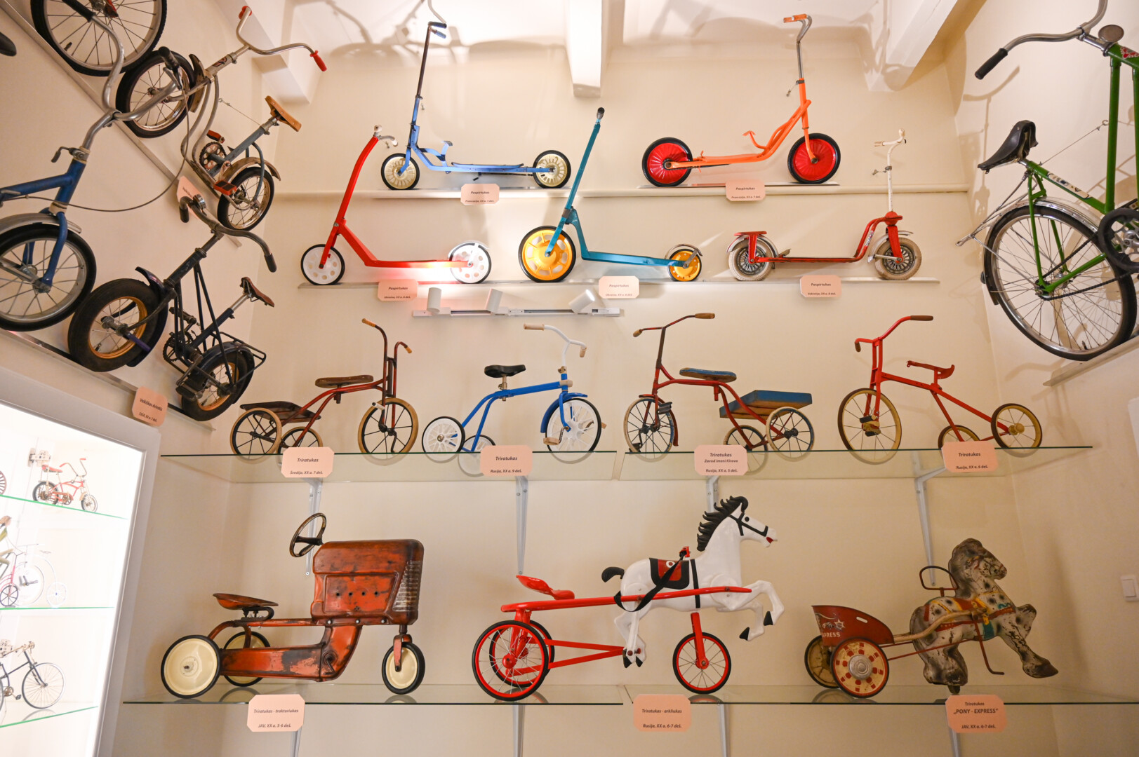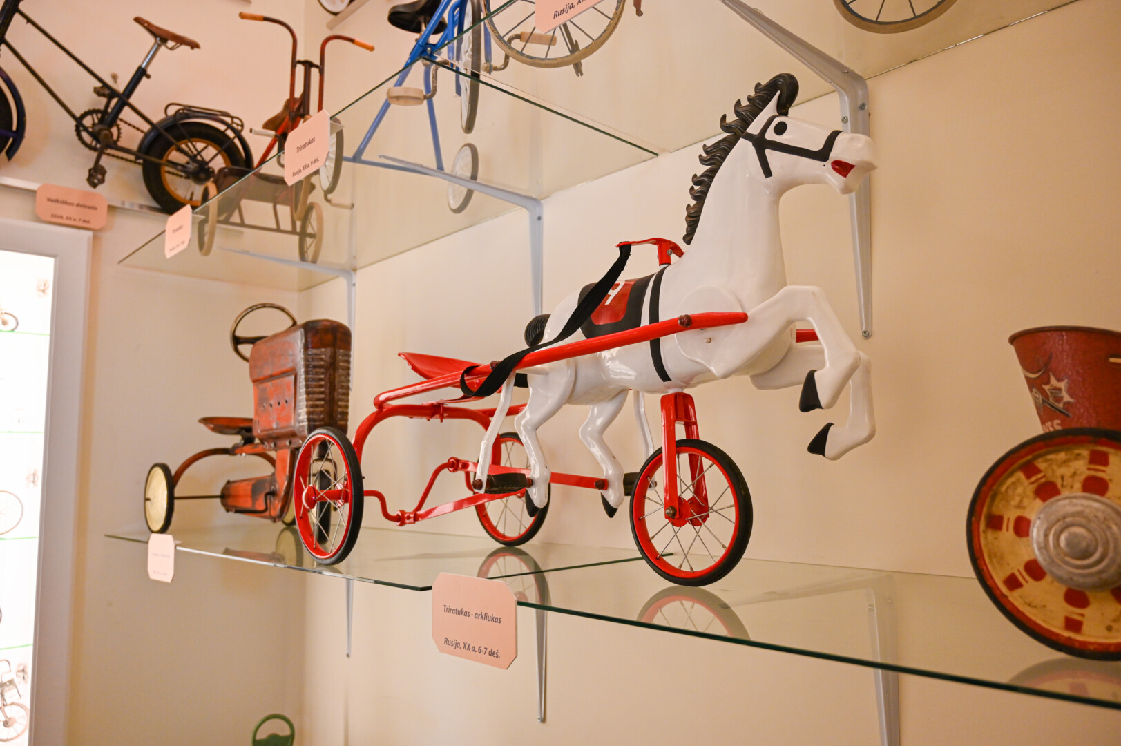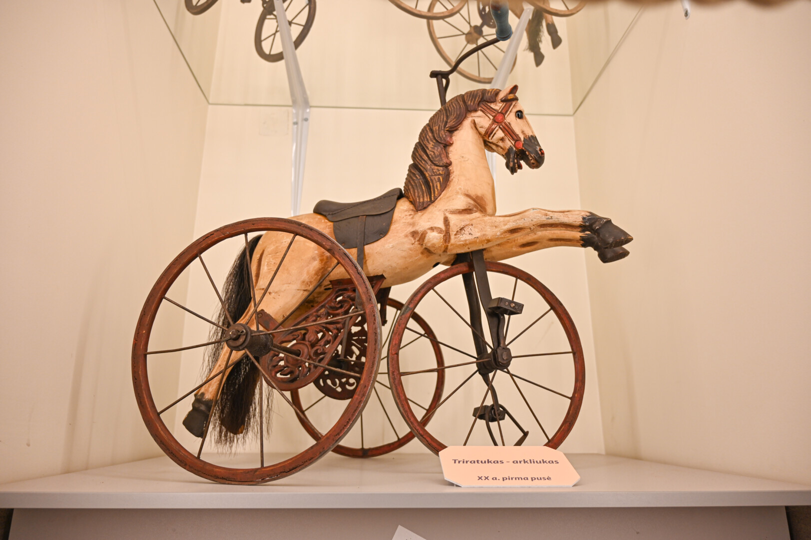 Tačiau labiausiai akį traukia įspūdingi triratukai-arkliukai, kuriuos tikriausiai galėjo turėti tik turtingųjų atžalos.