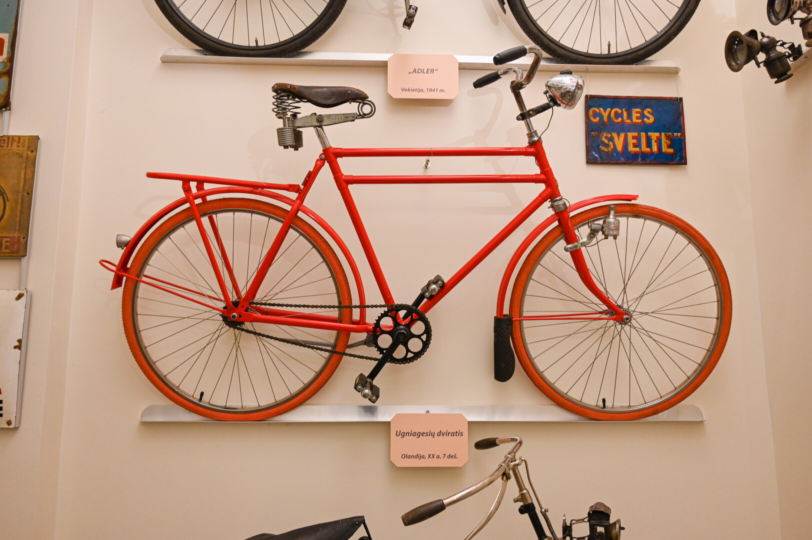 Muziejaus kolekcijoje nemažai dviračių, kuriuos naudojo įvairių profesijų darbuotojai: paštininkai, kariškiai, ugniagesiai gelbėtojai.