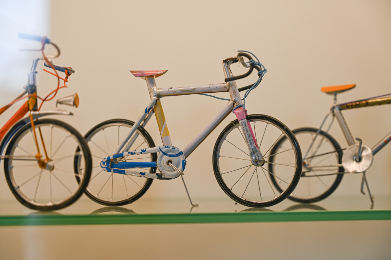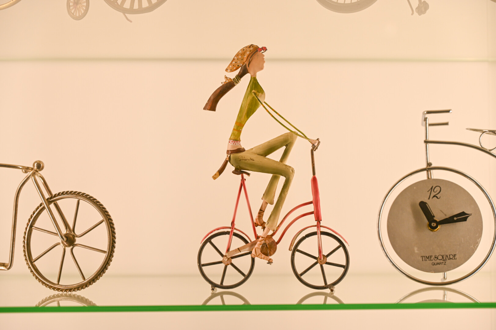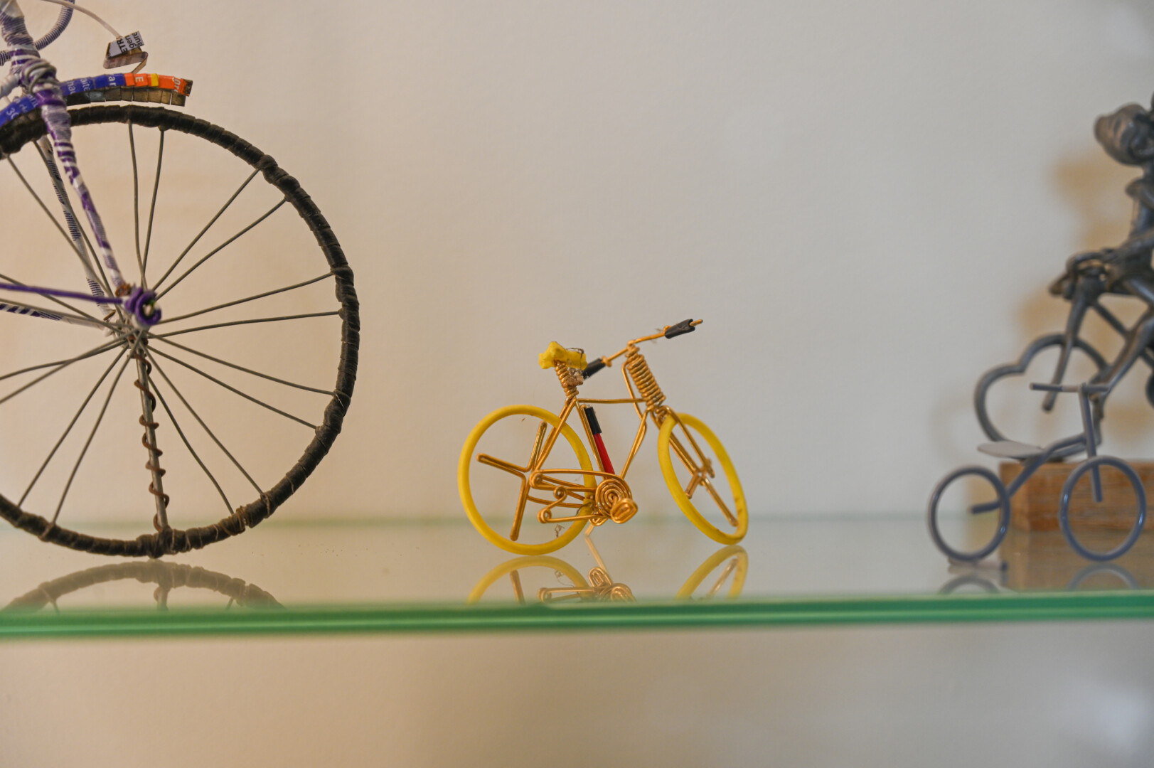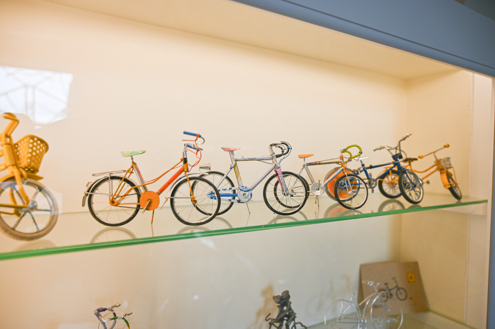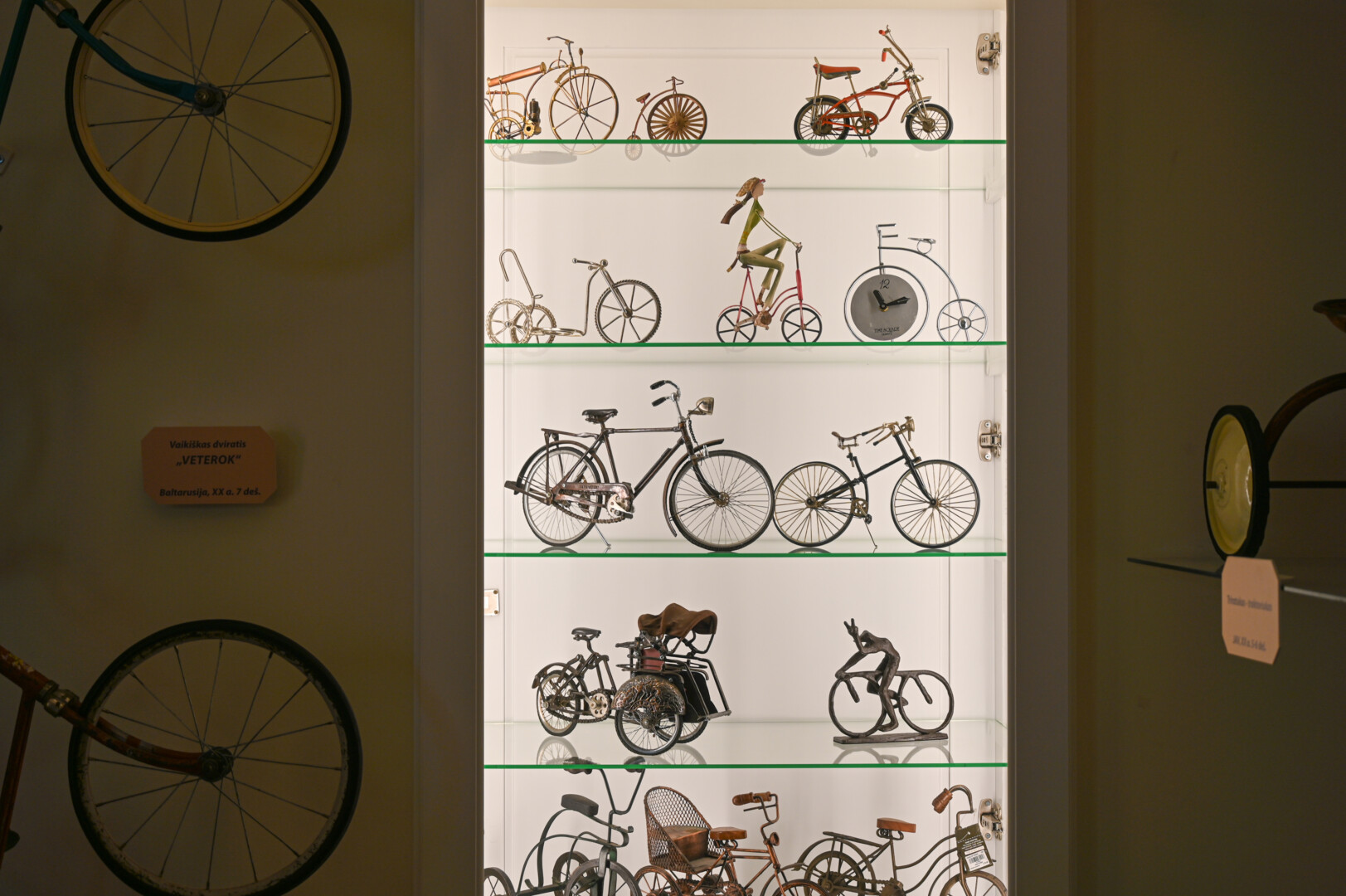 Čia pat – ir senųjų dviračių pompos, skambučiai, daugybė dviratininkų medalių, ženklelių, taurių, senos fotografijos ir pašto ženklai. Gana daug ir dviračių modeliukų ar skulptūrėlių, kai kurie jų stebina savo gamybos būdais – pagaminti iš armatūros, gėrimų skardinių ar kitų medžiagų.