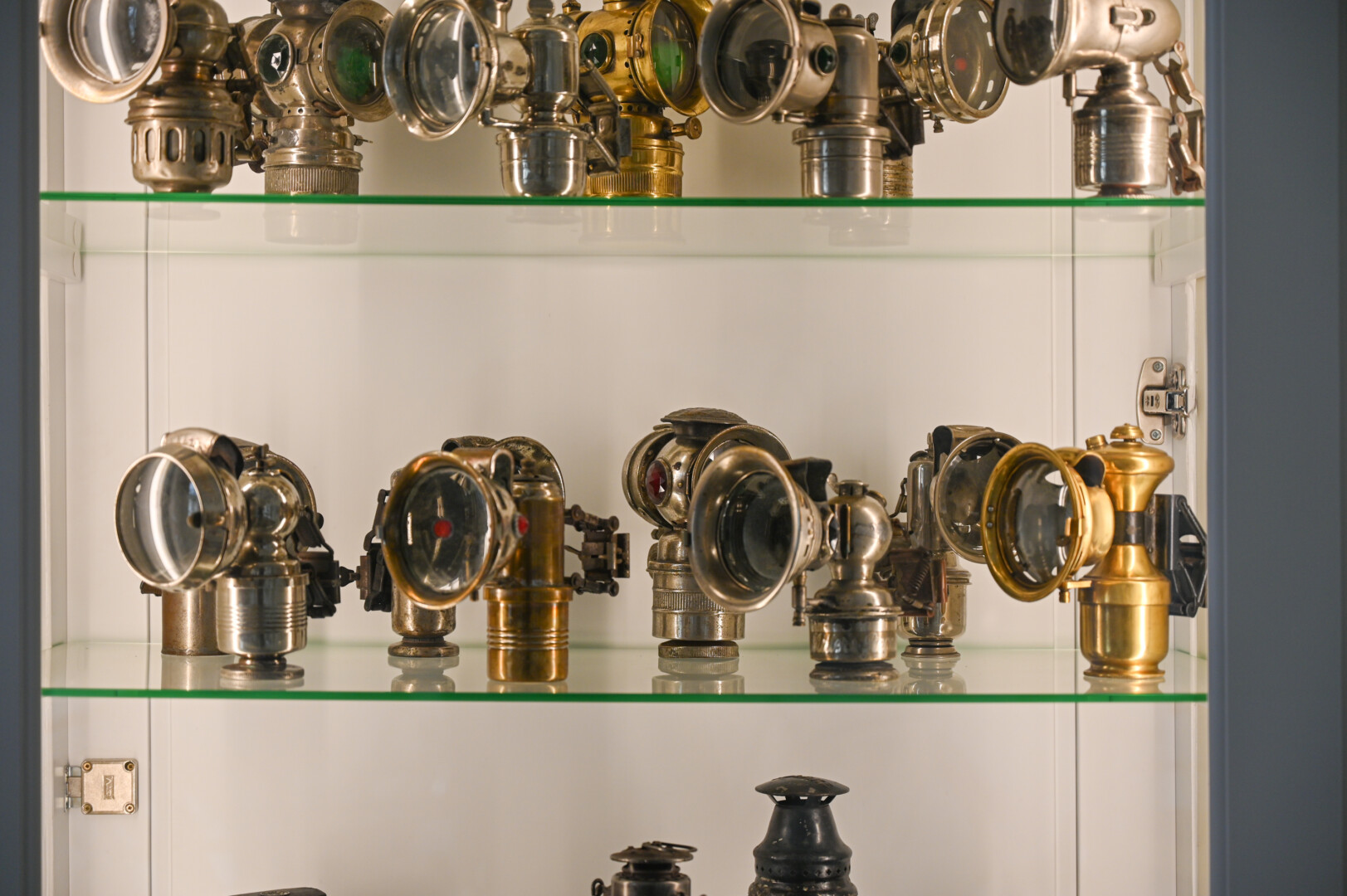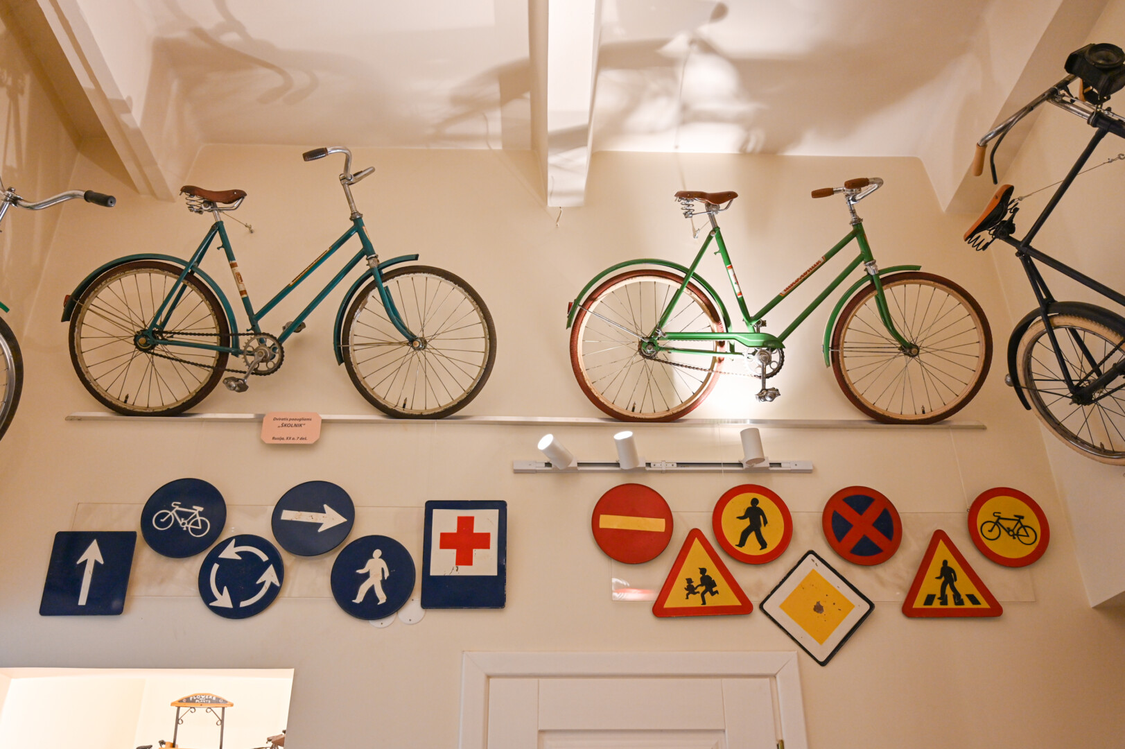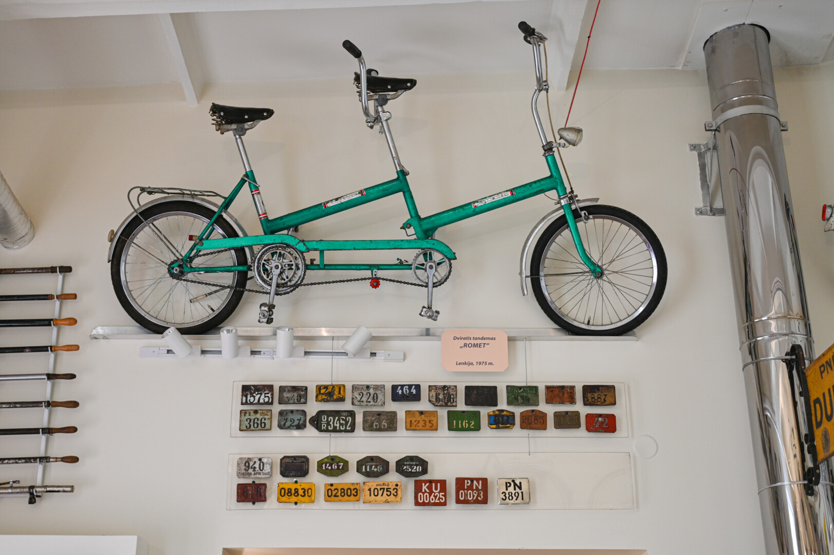 Muziejaus lentynose vietą rado ir dviračių ženkliukai, numeriai, lempos.