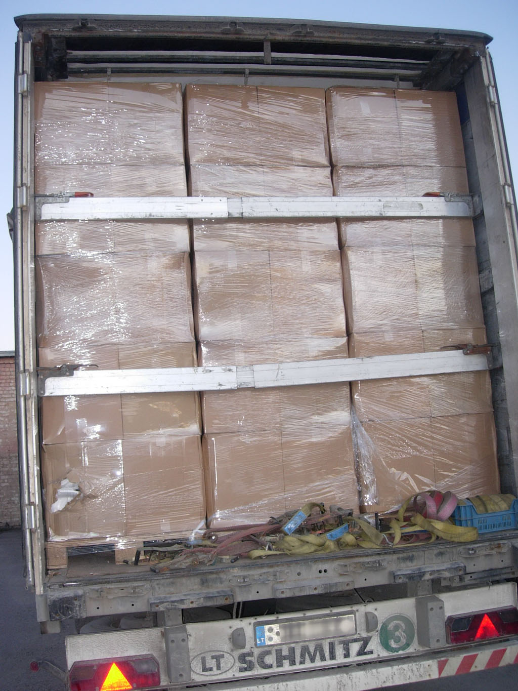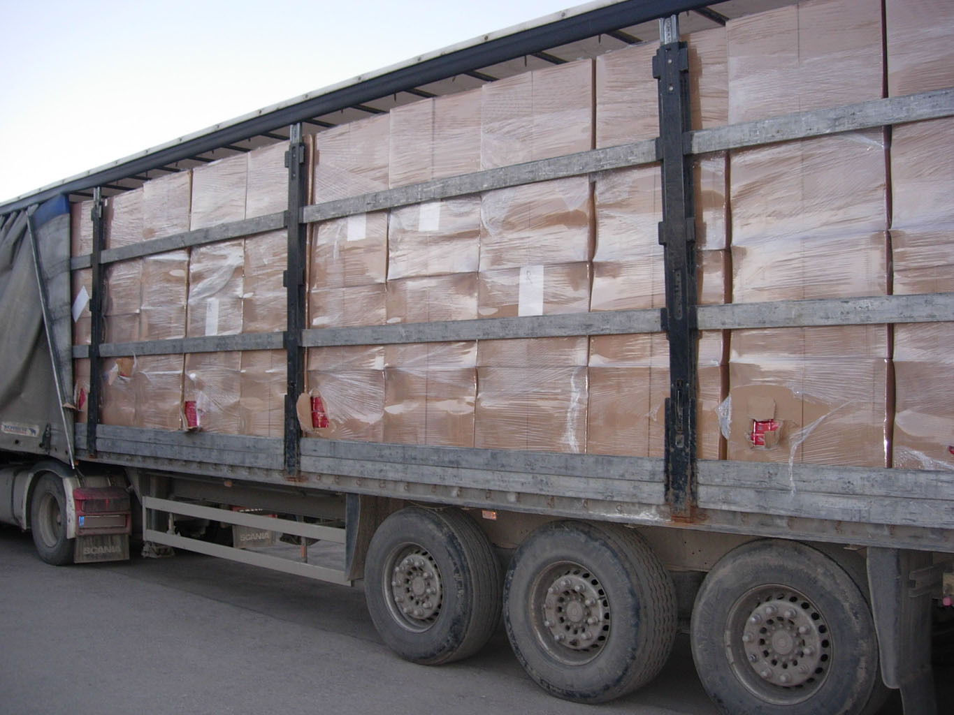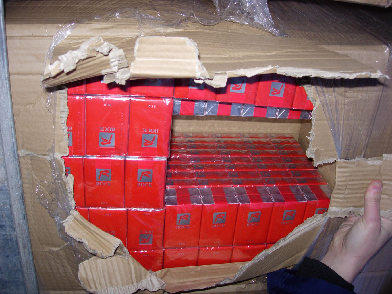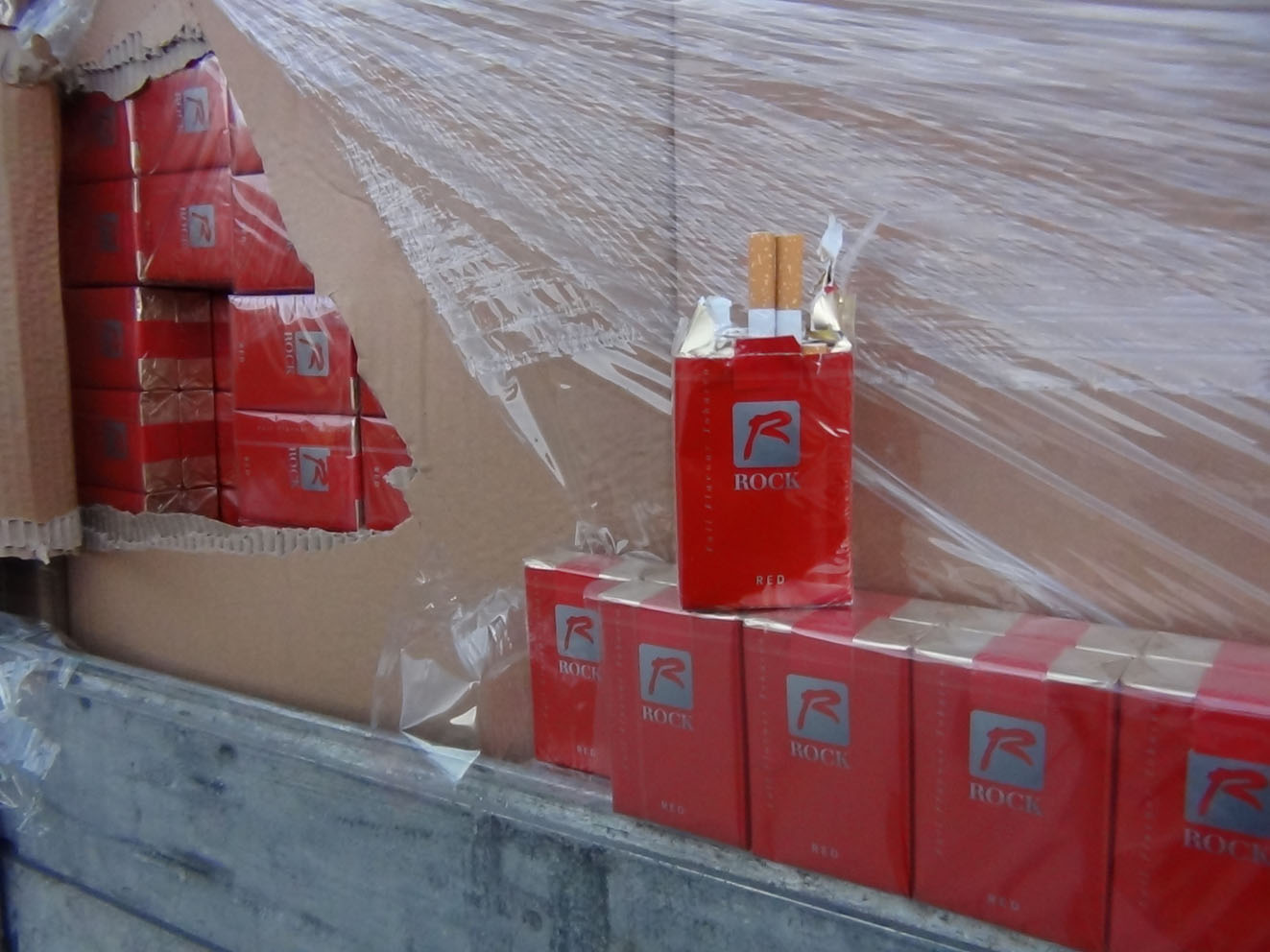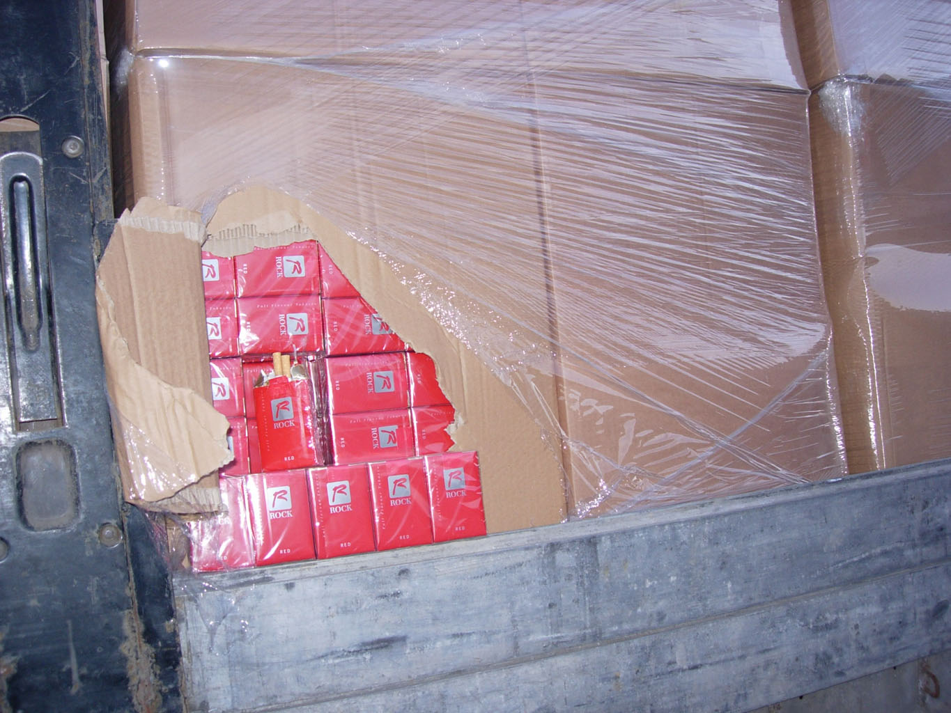 Tačiau atvėrus neplombuotas vilkiko puspriekabės duris, greitai paaiškėjo ūmus vairuotojo nenoras važiuoti pagrindiniu keliu. Mat paletėmis su vienkartiniais indais tebuvo užmaskuotas tik puspriekabės galas, o iš tiesų ji aklinai prigrūsta cigarečių dėžių. Preliminariais duomenimis iš viso „Scania“ vežta 560 tūkst. pakelių cigarečių „Rock“, be banderolių. Jų vertė su privalomais sumokėti mokesčiais – apie 1, 62 mln. eurų.