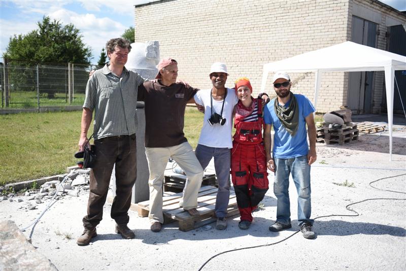 Kūrybinėse dirbtuvėse pačiame darbų įkarštyje menininkus atpažinti buvo sudėtinga. Visi jie dėvėjo specialias kaukes, akinius, ausines ir pirštines. Prigludę prie akmens vieni nuo jo braukė dulkes, kiti ieškojo tinkamų formų.