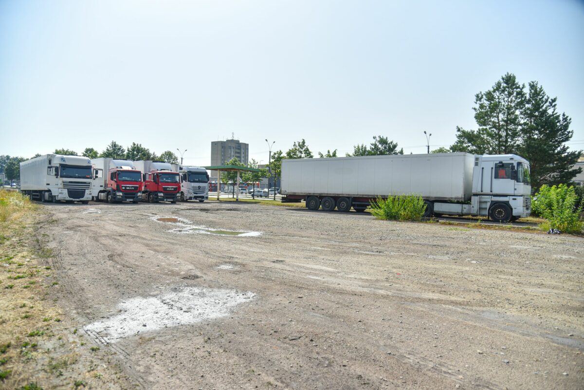 Ketvirtadienio popietę aikštelė beveik užpildyta: ant visų vilkikų kabinų užtrauktos užuolaidos, kaip susitarę visi vairuotojai kabinose kuo aukščiau susikėlę kojas. Visos čia stovinčios transporto priemonės – nelietuviškais, daugiausia rusiškais ir latviškais, valstybiniais numeriais. Tačiau susikalbėti su atvykėliais galima tik rusiškai – anglų kalba jiems svetima.