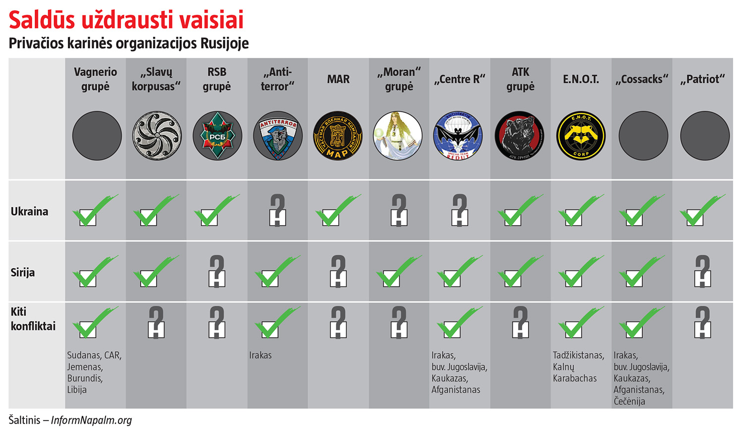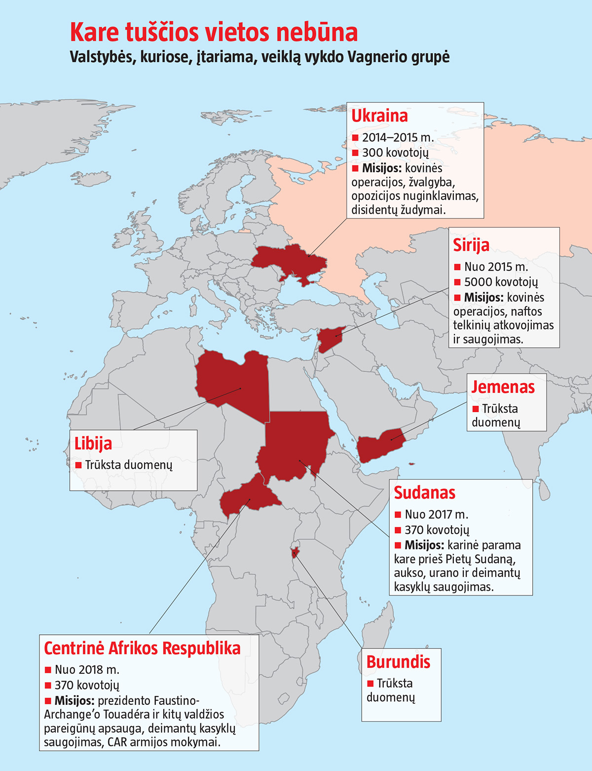 Vagnerio grupė – neafišuojama, bet svarbi Rusijos karinės strategijos dalis. Konkrečių įrodymų, kad ji dirba šalies valdžiai, trūksta, tačiau nenuginčijamų sąsajų – ne.
