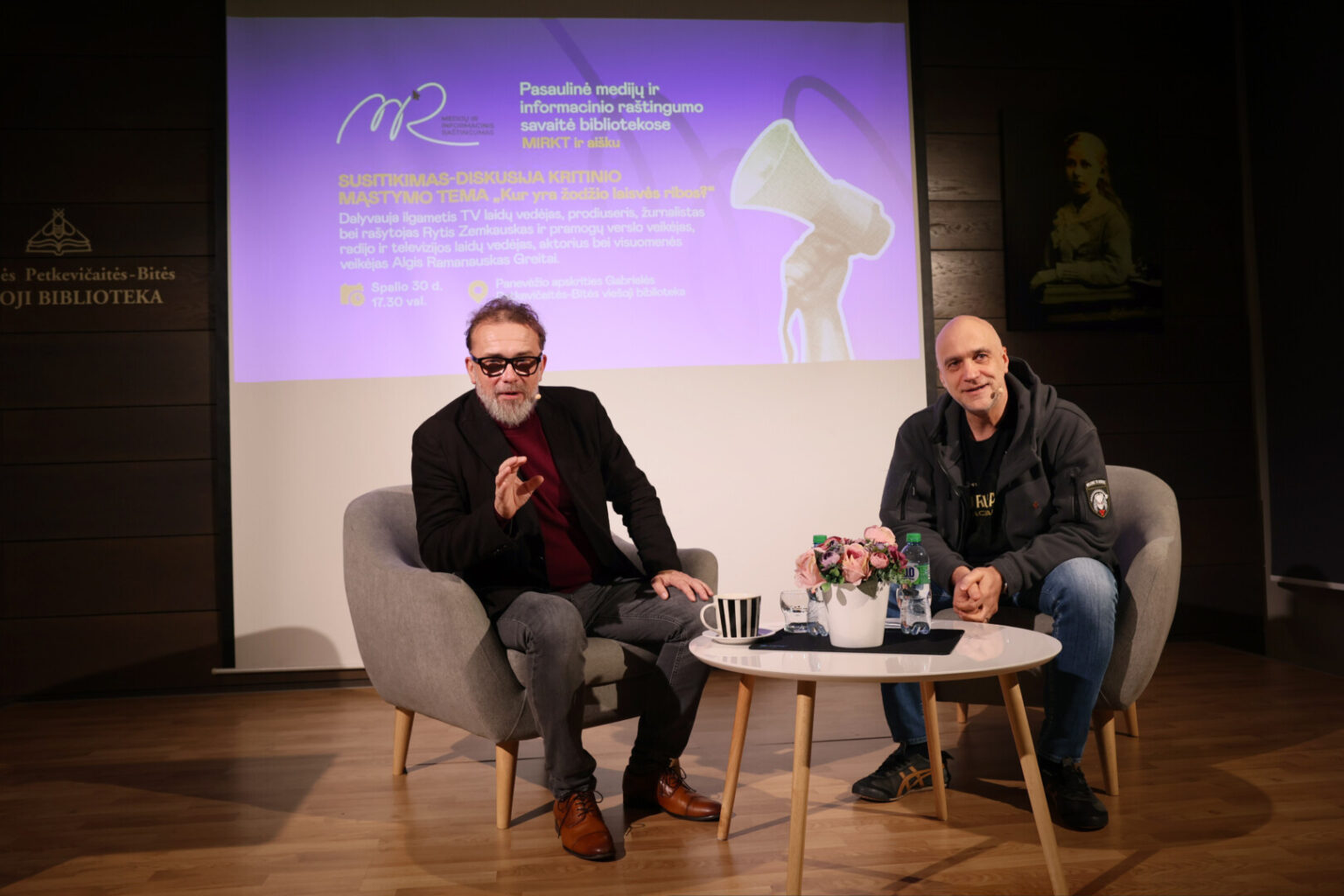 „Žaviuosi bibliotekos drąsa – mudu esame žmonės, kurių negalima valdyti. O tai jau savaime apie žodžio laisvę”, – pajuokavo TV laidų vedėjas, žurnalistas Rytis Zemkauskas, su pramogų verslo veikėju Algiu Ramanausku atvykęs į Panevėžio apskrities Gabrielės Petkevičaitės-Bitės viešojoje bibliotekoje surengtą diskusija „Kur yra žodžio laisvės ribos“.