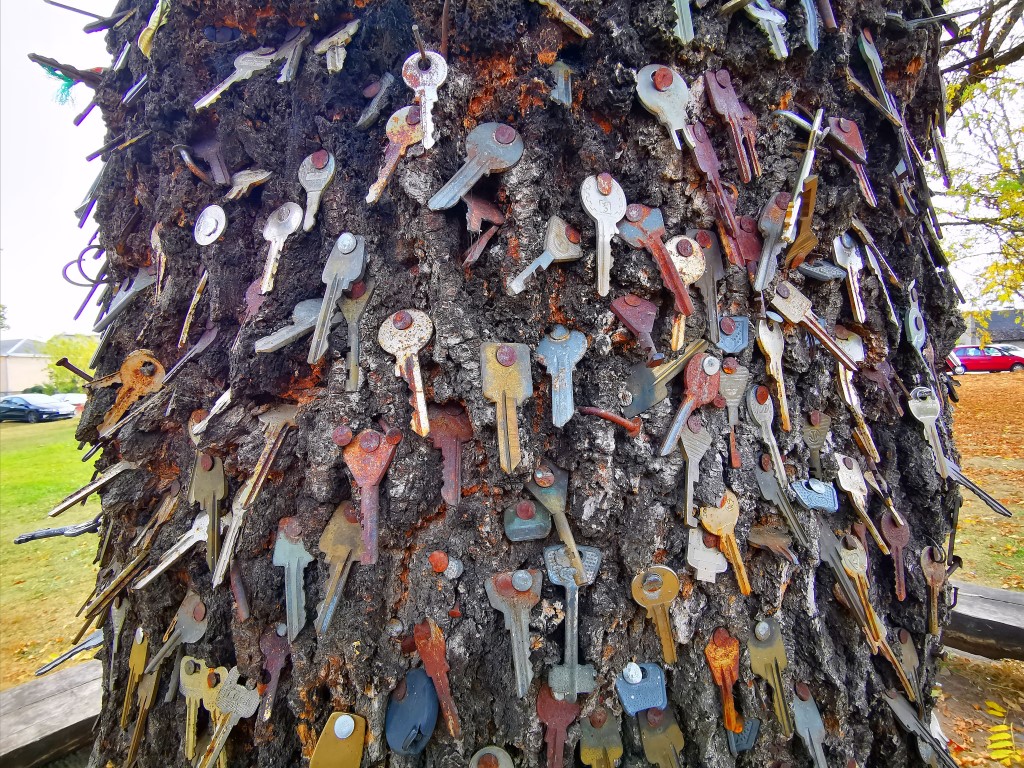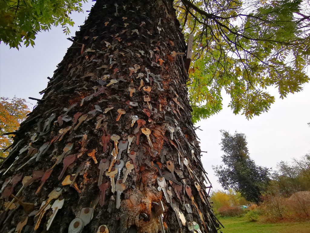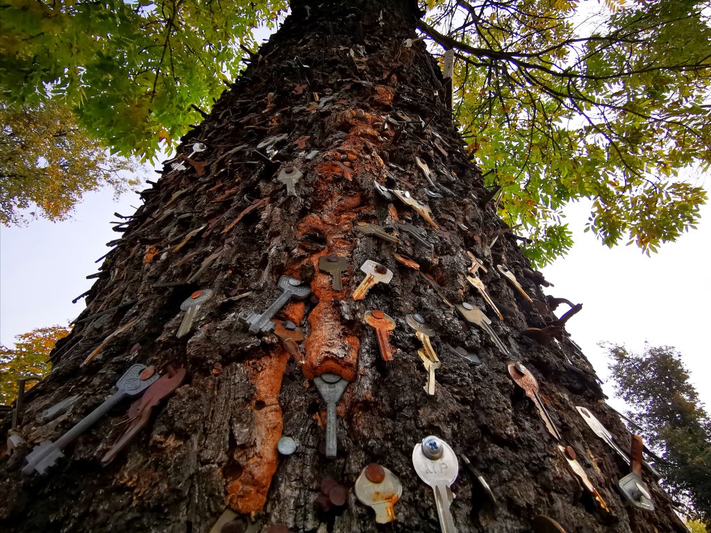 Telefonais papuošta kriaušė – šiame krašte ne vienintelis toks medis, kuriame susilieja gamta ir išmonė. Sunkų būtų net suskaičiuoti, kiek raktų kaba ant pačiame Panevėžio centre, jaukioje Birutės gatvelėje, stūksančio uosio.