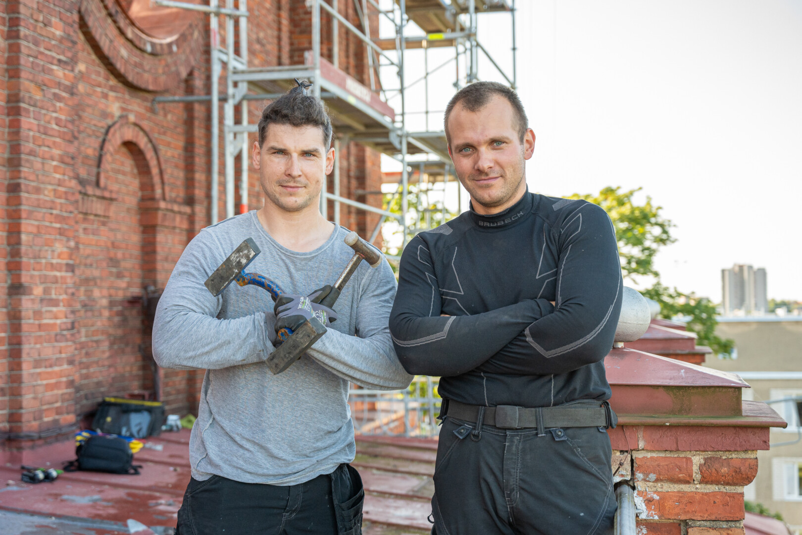 Per aštuonerius darbo Norvegijoje metus jiems teko dengti keturių tenykščių bažnyčių stogus. Panevėžio Šv. apaštalų Petro ir Povilo bažnyčios stogas trijulės darbo biografijoje – jau penktas.