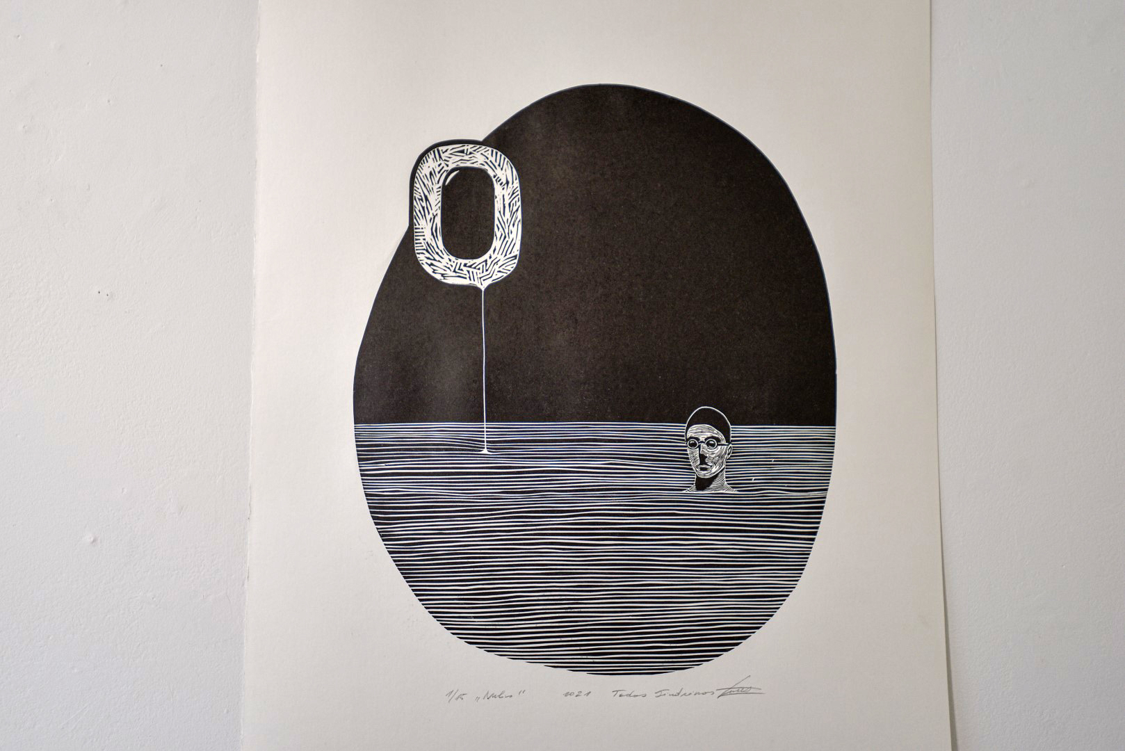 „Mano darbai labai plakatiški, o linoraižinys toks ir yra. Kurdamas turi būti labai stiprus, bet kartu subtiliai pajusti, kad linija pulsuotų. Vienaip rėži – ji bus vientisa, atleidi – tampa pulsuojančia. Visa tai priklauso nuo patirties“, – sako Tadas, linoraižinius kuriantis maždaug du dešimtmečius.