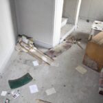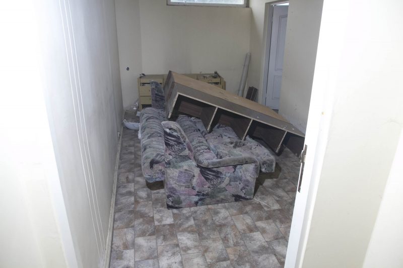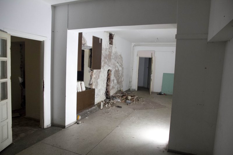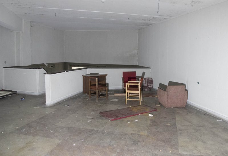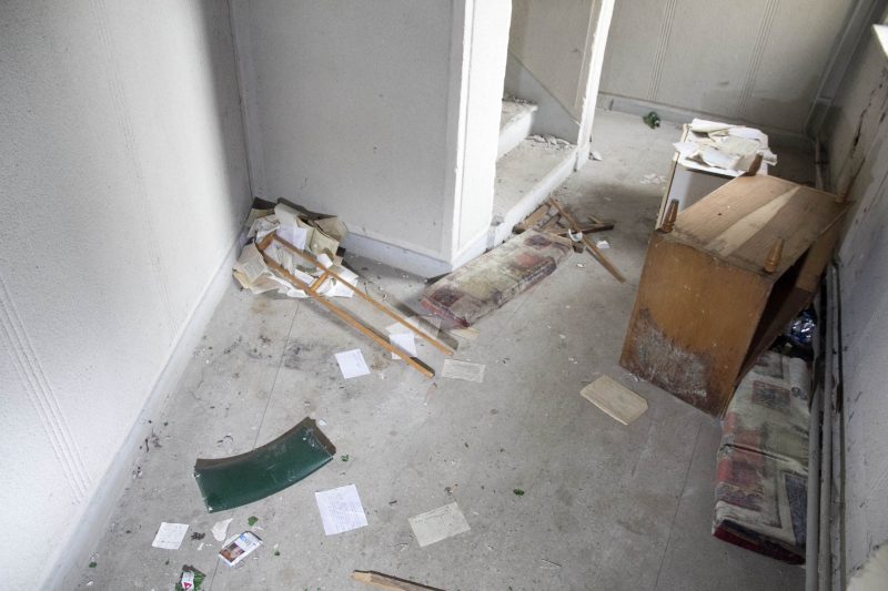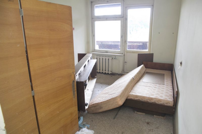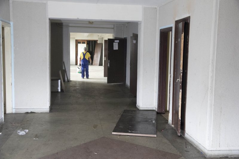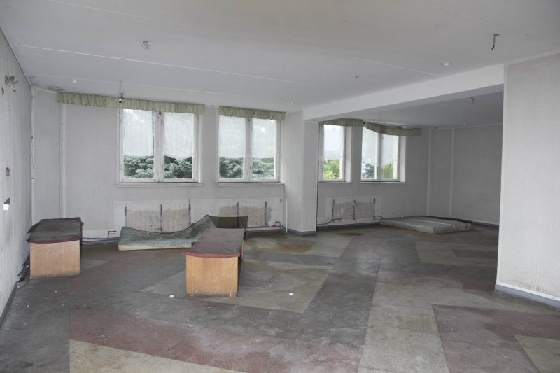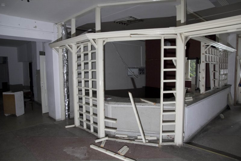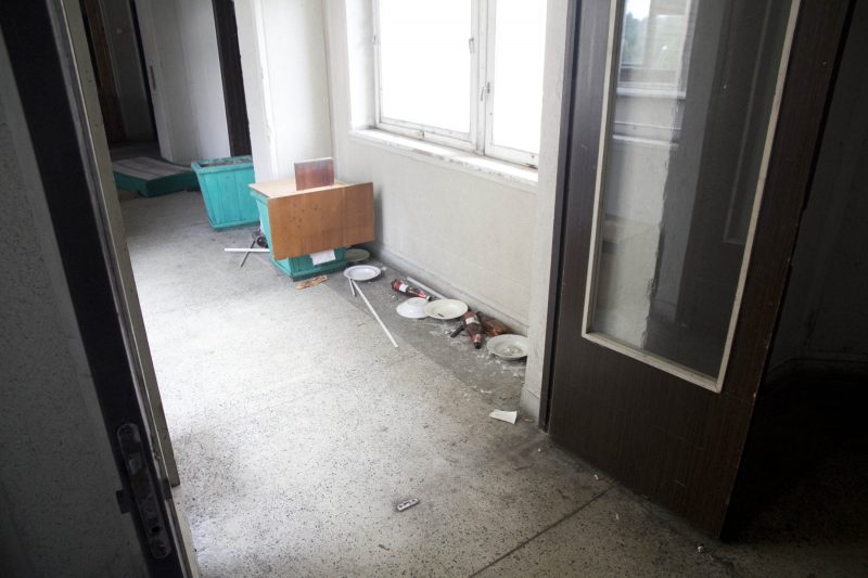 Buvusiuose nakvynės namų administracijos kabinetuose teberiogso suklypę rašomieji stalai, medinės dekoracijos prie budėtojo posto išlaužytos, tarsi kažkas būtų ieškojęs apsiginkluoti pagalių. Vienintelis tuščias ir gana švarus – nakvynės namų vadovės kabinetas.