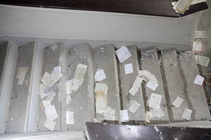 Laiptai pakeliui į rūsį klote nukloti popierėliais – 2008-aisiais išrašytais tuberkuliozės ligoninės siuntimais mikrobiologijos laboratorijai. Juose aiškiai nurodyti pacientų vardai, pavardės, gimimo metai, namų adresai ir diagnozės.