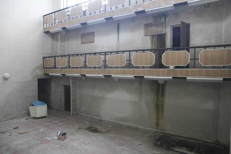 Pastato viduje apima jausmas tarsi lankantis mirusiame mieste. Vestibiulyje nuo drėgmės net pažaliavusios sienos, aptrupėję blokai, išsikraustant palikta galybė šiukšlių. Nors pastatas jau porą metų nenaudojamas, pirmame aukšte, kur kadaise būta gyvenamųjų kambarių, dvokia fekalijomis.