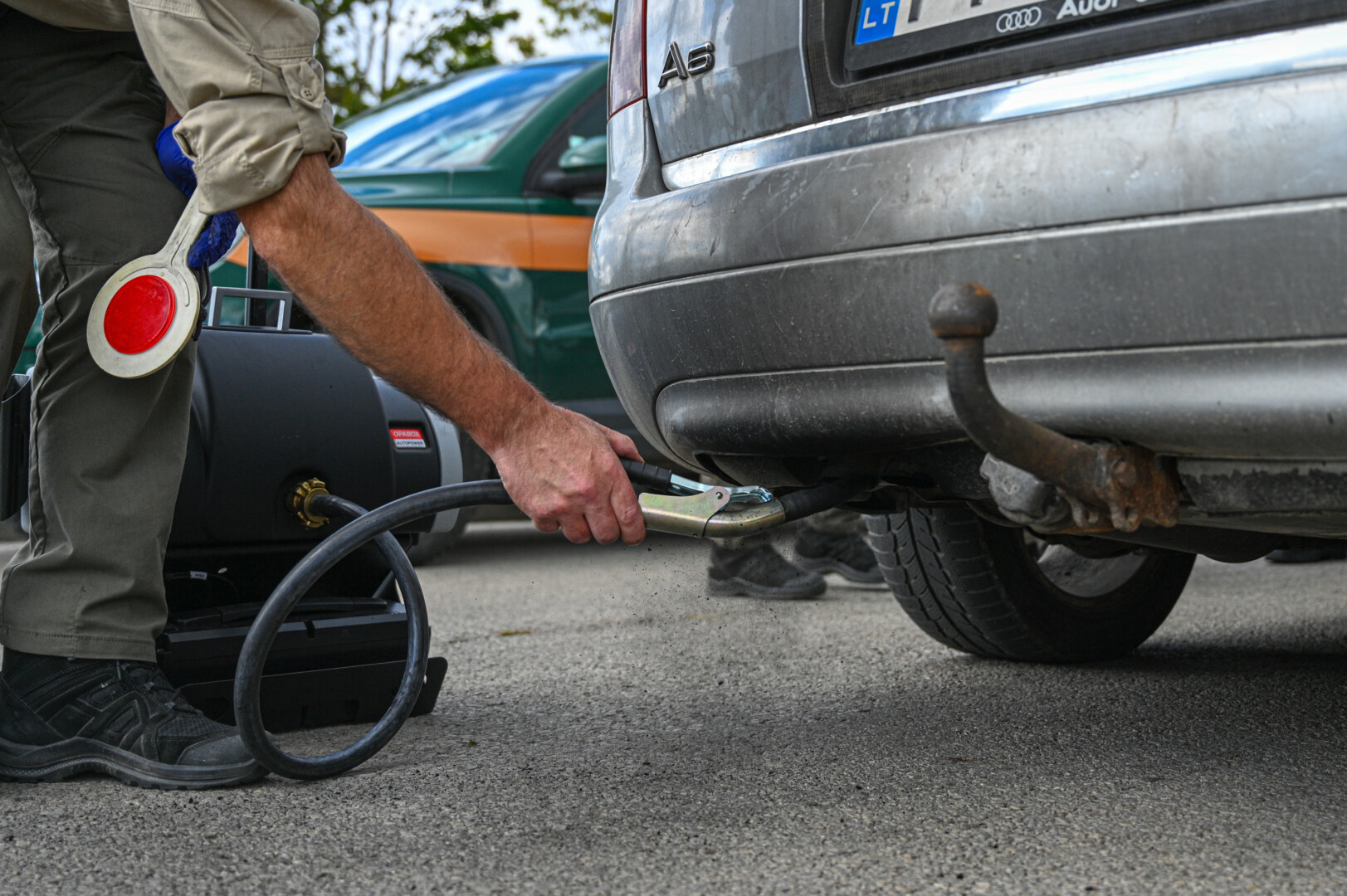 Departamento pareigūnai sustabdę transporto priemonę dėl taršos kontrolės netikrins joje esančių vairuotojo daiktų. Tik turint pagrįstų įtarimų, kad tikrinamame automobilyje esantys daiktai yra susiję su nelegalia medžiokle, žvejyba ir pan., pareigūnai turi teisę daiktus patikrinti.