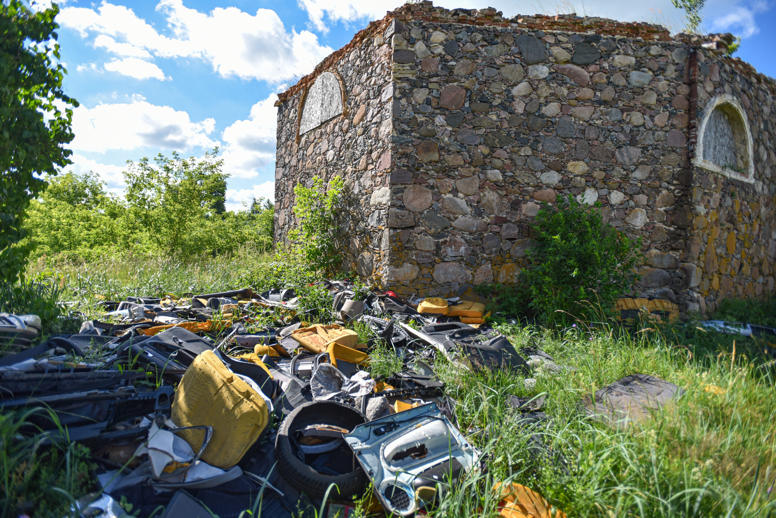 „Sekundė“ jau yra rašiusi apie problemine, ardomų automobilių dalimis teršiama vieta mažne prieš dešimtmetį tapusią fermą netoli Ramygalos, Juodikonių kaime. Visą tą laiką ji buvo ir tebėra ir vietos seniūno, ir aplinkosaugininkų akiratyje. Nepaisant to, plastikinių, poroloninių ardomų mašinų dalių, sudėvėtų padangų čia tik daugėjo.