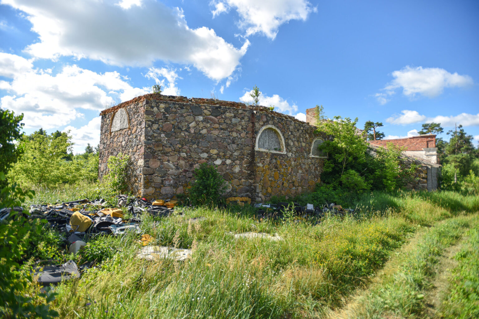 Viena jų – buvusi gyvulių ferma šalia Ramygalos, antroji – Naujamiesčio seniūnijoje esanti begriūvanti koplyčia-mauzoliejus. Ir sovietmečio laikų mūrą, ir šimtametę šventovę juosia parduoti nebetinkančios išardytų mašinų dalys.