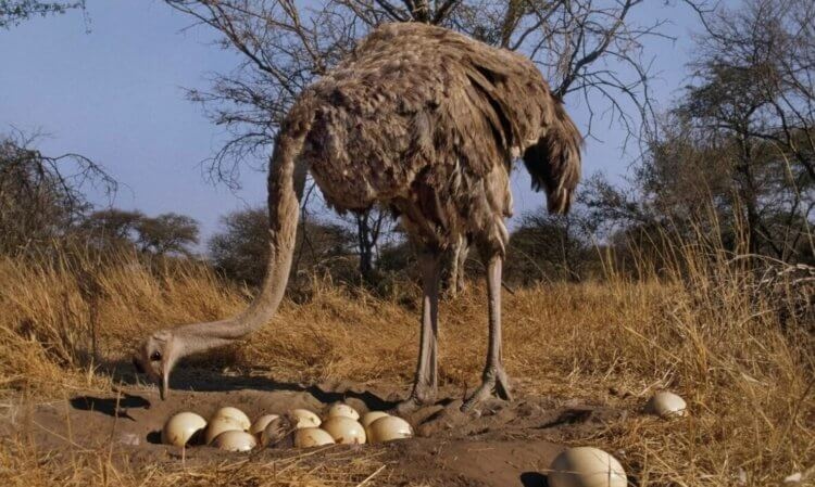 Kai strutis nuleidžia galvą prie kiaušinių, gali atrodyti, kad slepia ją smėlyje.