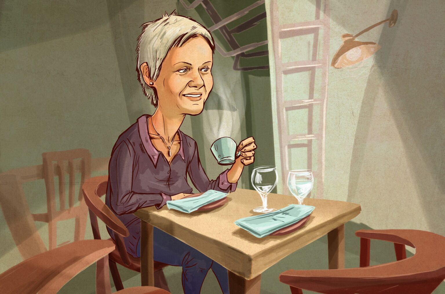 Mūsų išsirinkti pietų patiekalai, sakyčiau, moteriškai subtilūs – Nida ragaus žuvų bei jūrų gėrybių sriubą ir paltusą su kokosais, o aš jūrų šukučių užkandį ir dūmo skonio tuno kepsnį su moliūgų piurė (gerai, antrasis mano pasirinkimas gal ir nėra stereotipiniu požiūriu moteriškas). Kol lūkuriuojame, N. Degutienė mintimis nuklysta į studentiškus laikus: kaifą gaminti maistą bendrabutyje (ji tai sako be lašelio ironijos) ir pirmąjį nuosavą būstą, kurį apžiūrėdama pirmiausia įvertino, ar jo virtuvė pakankamai didelė. Metai iš metų augantis susidomėjimas kulinarija naujomis spalvomis ir skoniais atsivėrė Izraelyje, kur Nida išvyko gyventi keleriems metams kartu su vyru, paskyrus jį Lietuvos ambasadoriumi šioje šalyje.