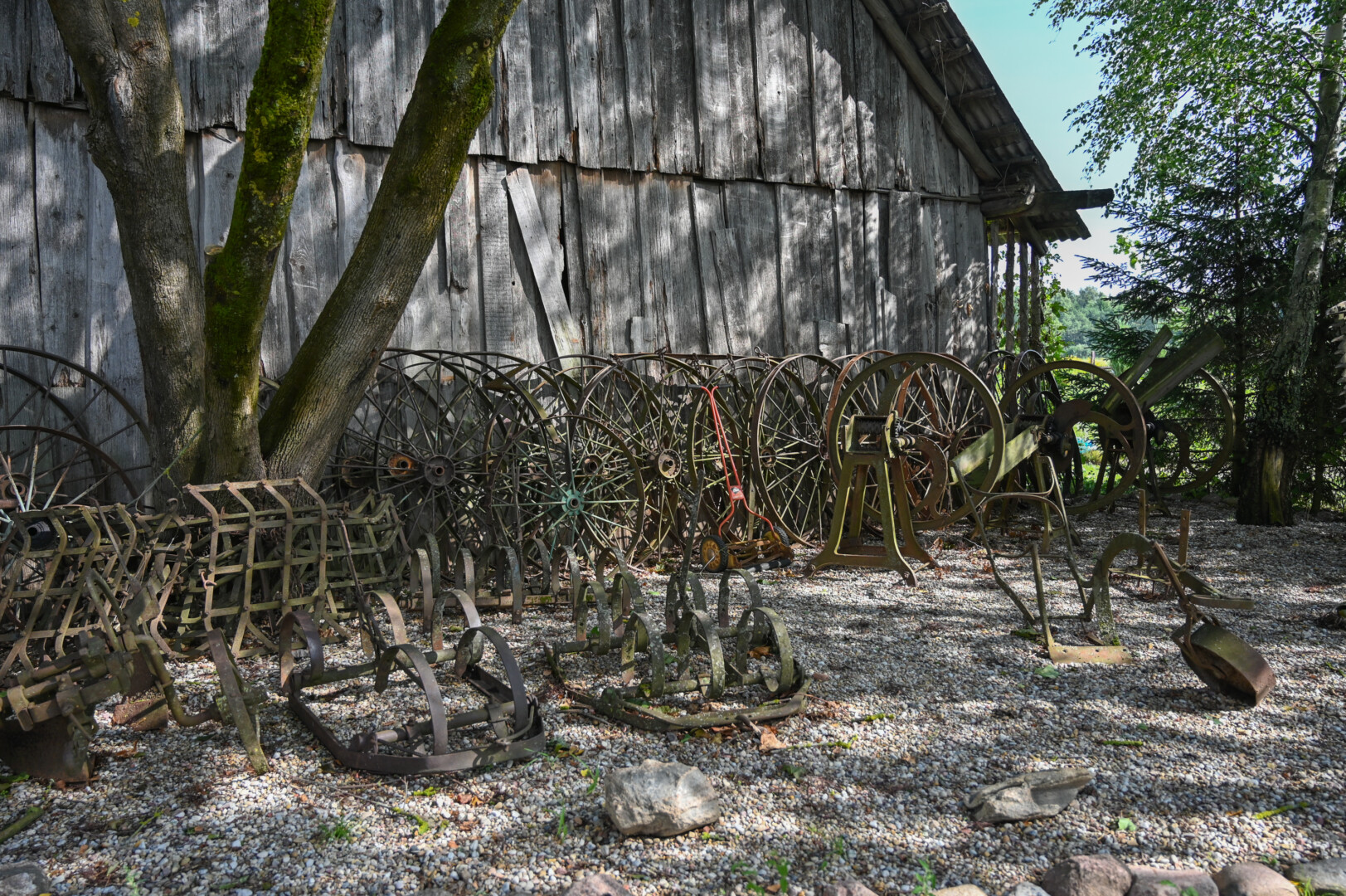 Jame daugybė kalvių nukaltų metalinių žemės ūkio padargų, kuriuos, įdirbdami žemę, tampydavo arkliai.