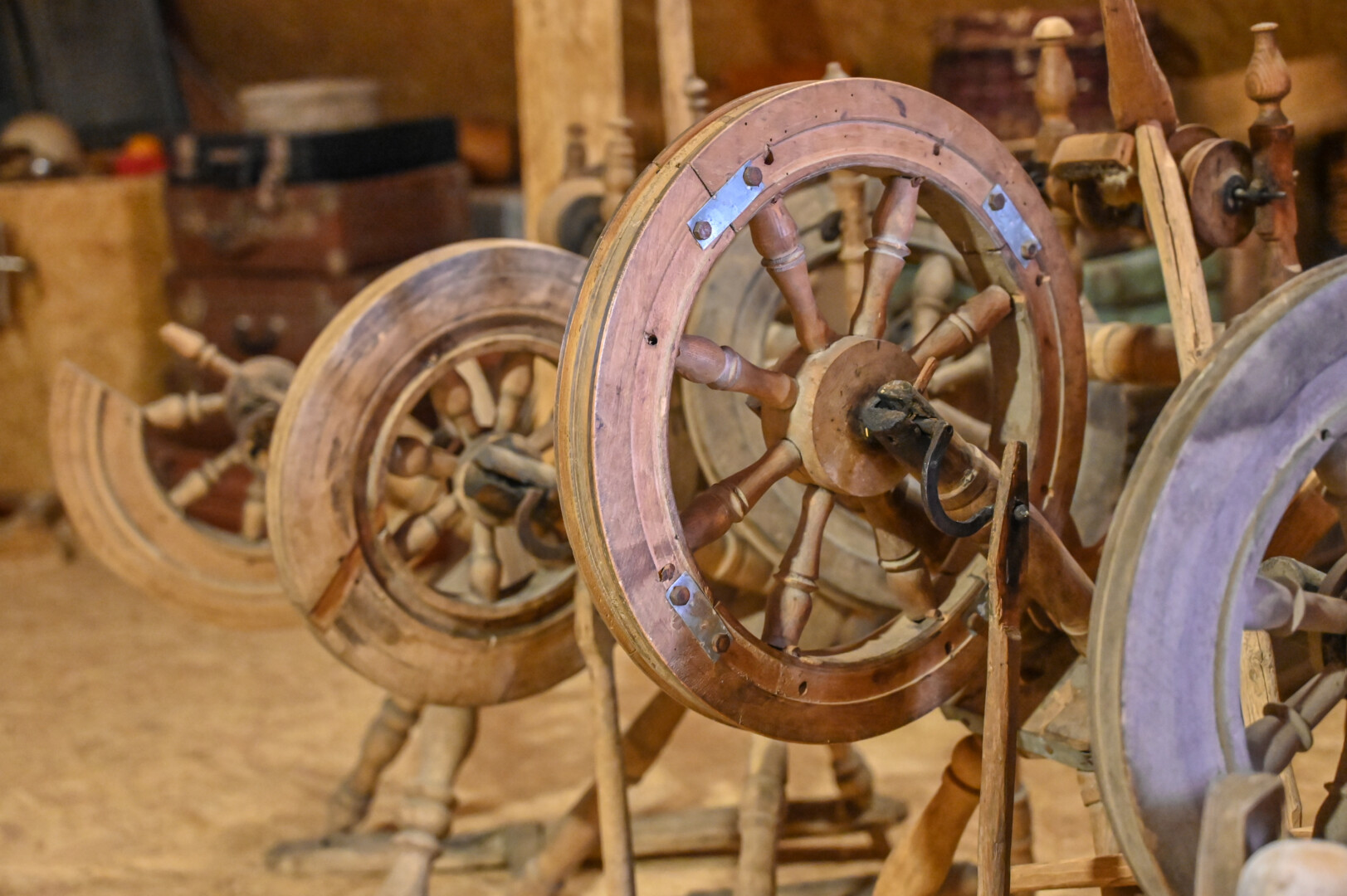 Į muziejų surinkta ir daugybė verpimo ratelių, esti dar praėjusio amžiaus vidurio skalbyklių, lygintuvų, kaitinamų anglimis.